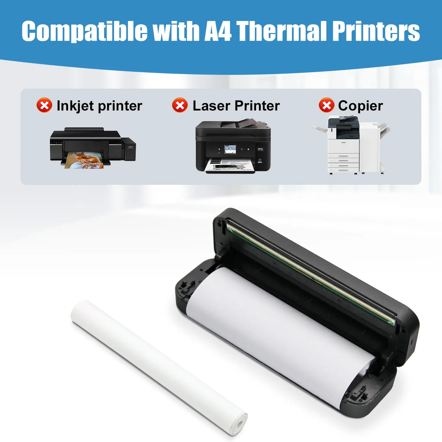 4 rolls of A4 thermal printing paper 210mm semi-gloss paper suitable for office school home use portable printer compatible