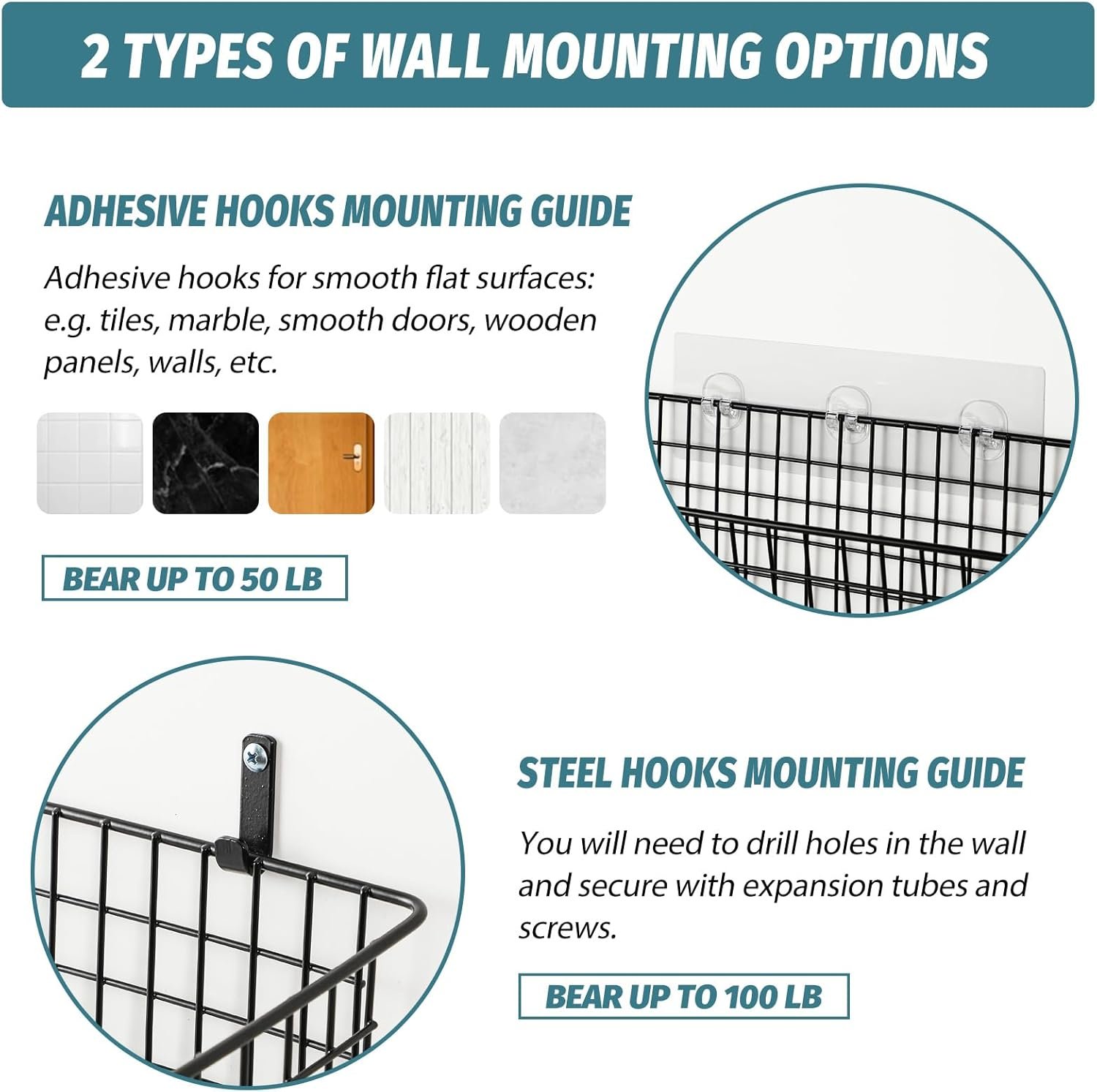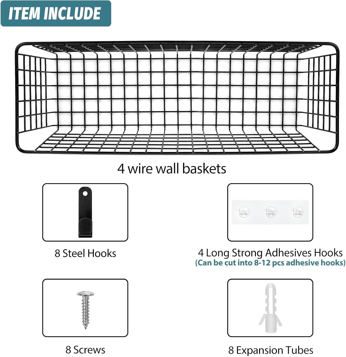 ★Sturdy Steel Wire Baskets & Eay to Install – These baskets are made of durable steel wire with durable anti-rust & anti-corrosion coating, as well as the wall-mounted hardware and hooks.