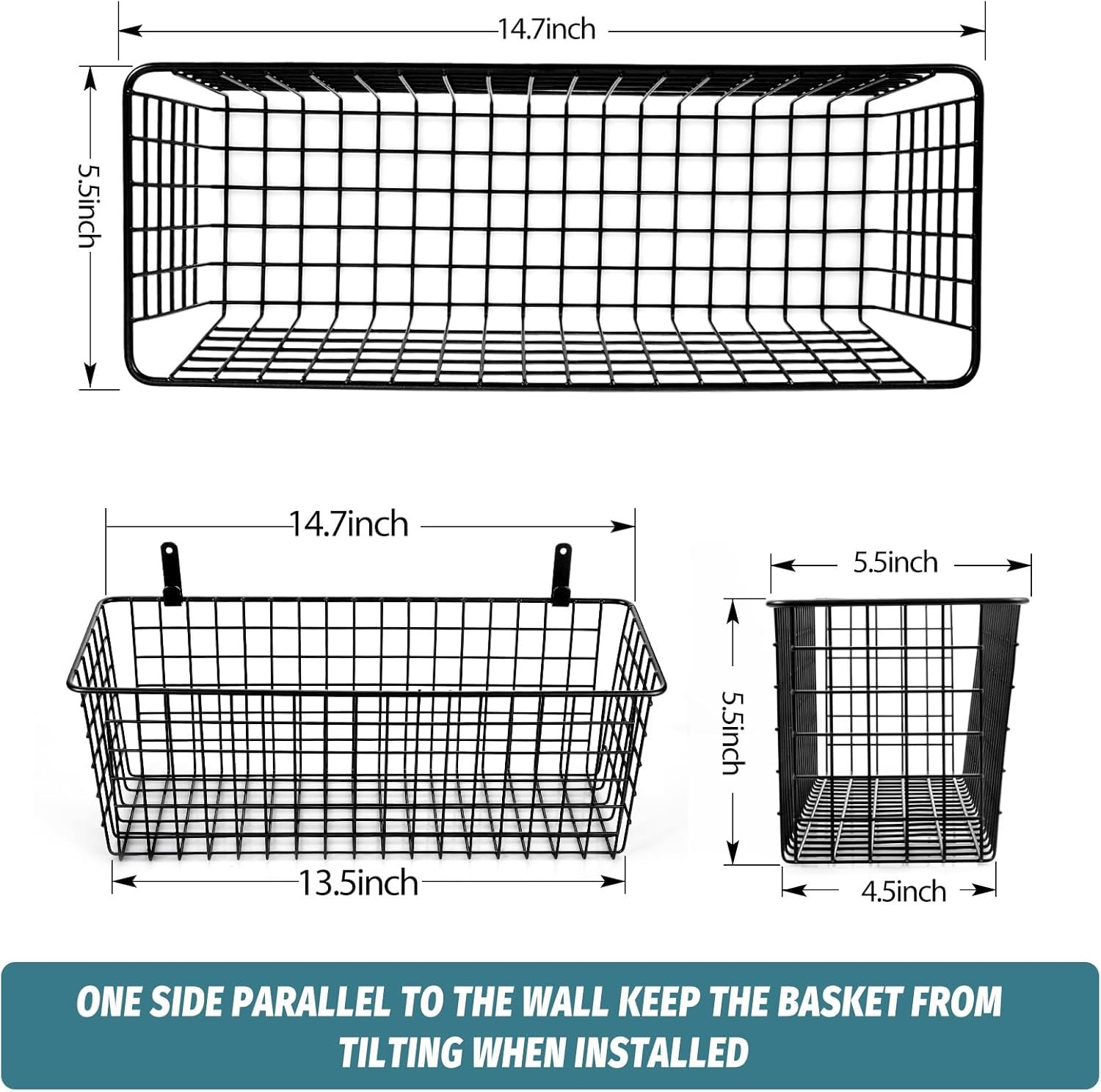 ★4 Classic Extra Large Wall-Mounted Baskets – We know the needs that many people will buy multiple baskets for home use. We make a 4-piece basket set, which saves you money to own 4 baskets one-time purchase compared with buying only 1 basket four-times. [ 14.7 inches long X 5.5 inches wide X 5.5 inches high]