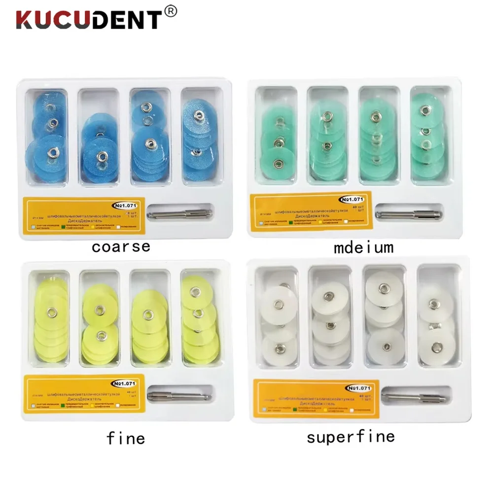 1.Finishing polishing discs with 4 distinct color-coded grits, allowing for rapid attachment to the accompanying mandrel and streamlined polishing processes across various dental surfaces.