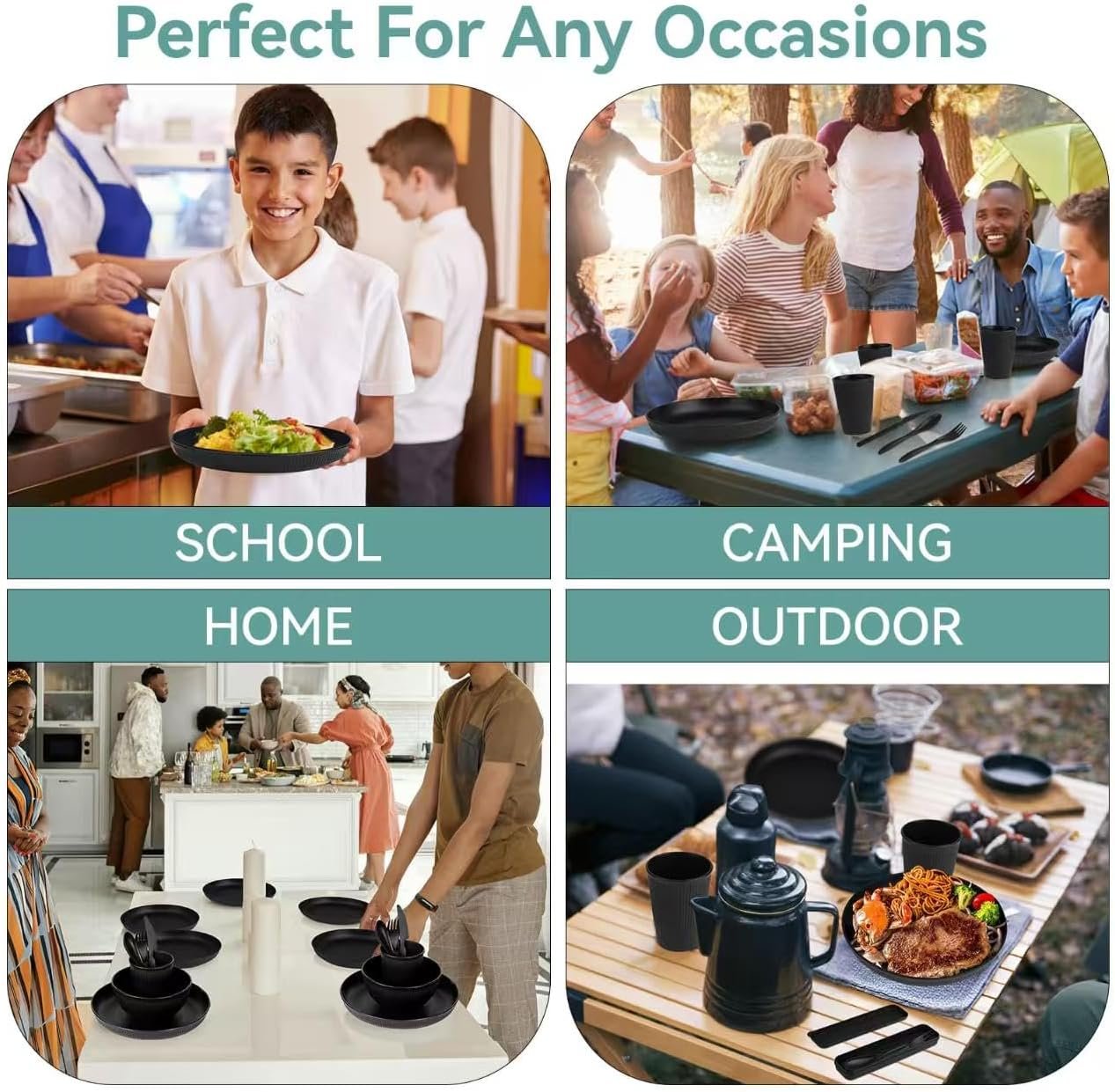 Multi-purpose: Wheat straw dinnerware sets are lightweight, easy to pack and carry, making them suitable for daily meals at home and perfect for outdoor camping, gatherings, and travel use.