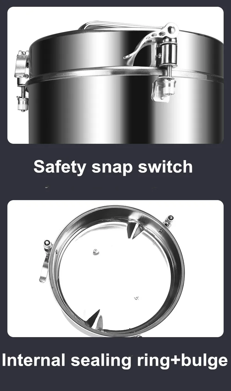4, clean sanitation, work laid the dust, using food grade silicone seals, crushing material without loss, crushing chamber adopts food grade stainless steel drawing process, wall using high gloss polishing technology, smooth and easy to clean; crushing different drugs never string color and odor; grinding groove and blades are made of stainless steel, meet avoid iron in many Chinese herbs requirements.