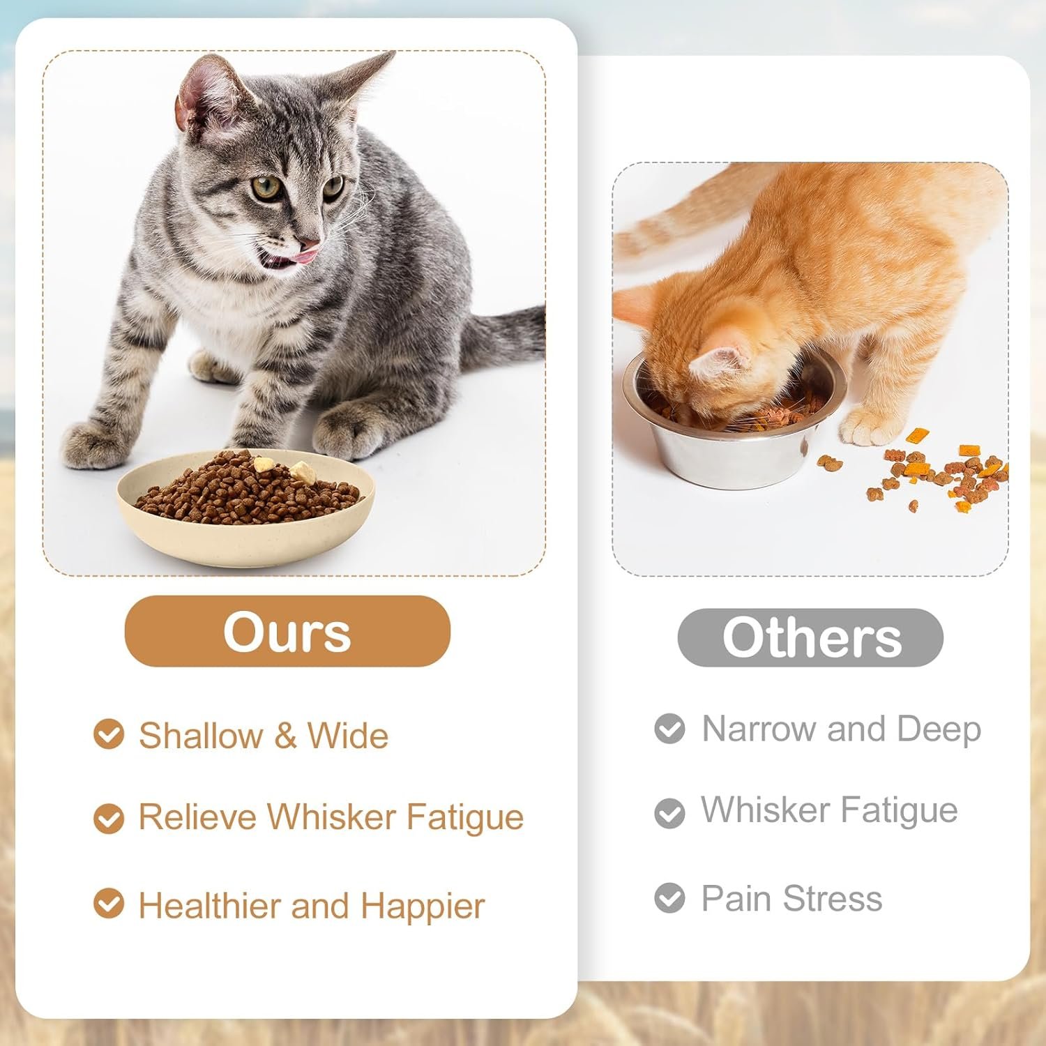 Nice Material: these cat plates are made of nice wheat straw plastic, making them a safe choice for your pets; Whether you have multiple pets or need to replace old ones, these bowls prove to be an excellent choice