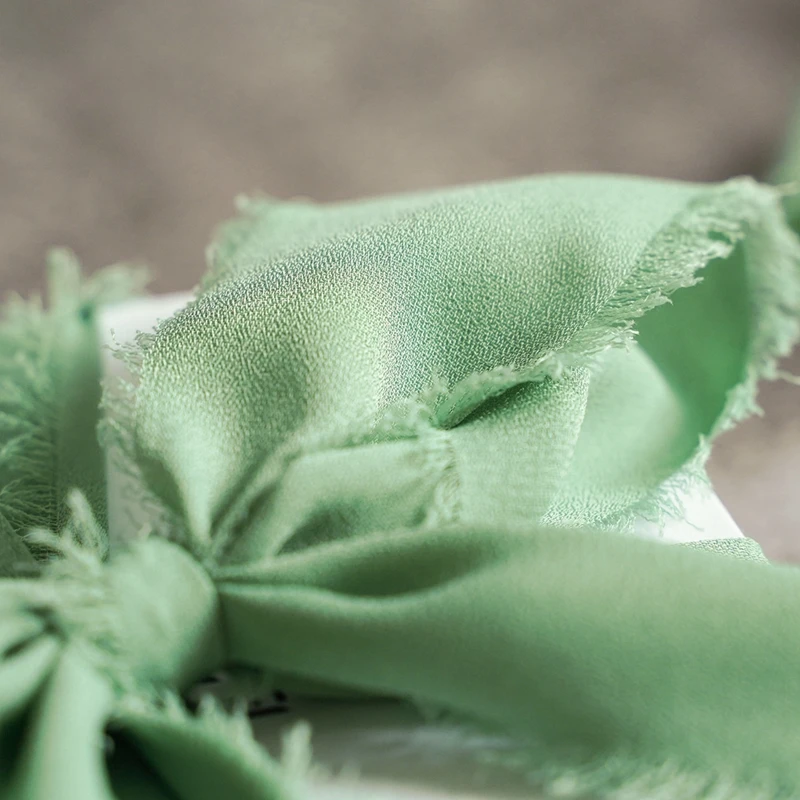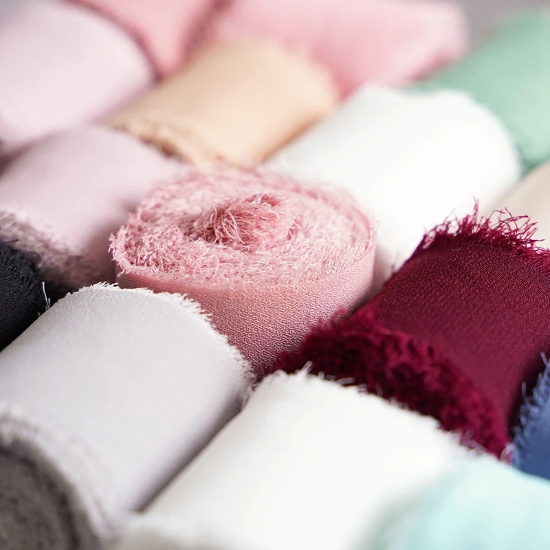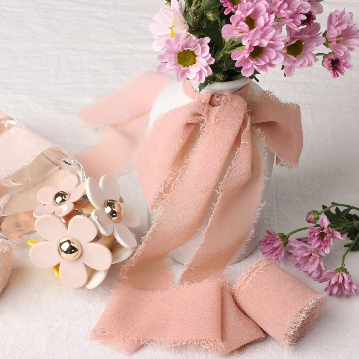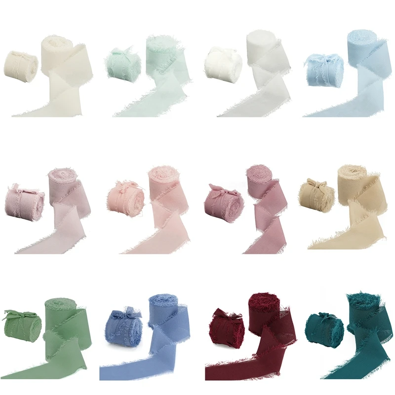 4CM*5M Handmade Frayed Edged Wrinkle Chiffon Silk Ribbon For Wedding Invitation Wrapping Decor Sheer Fringe Craft Bridal Bouquet