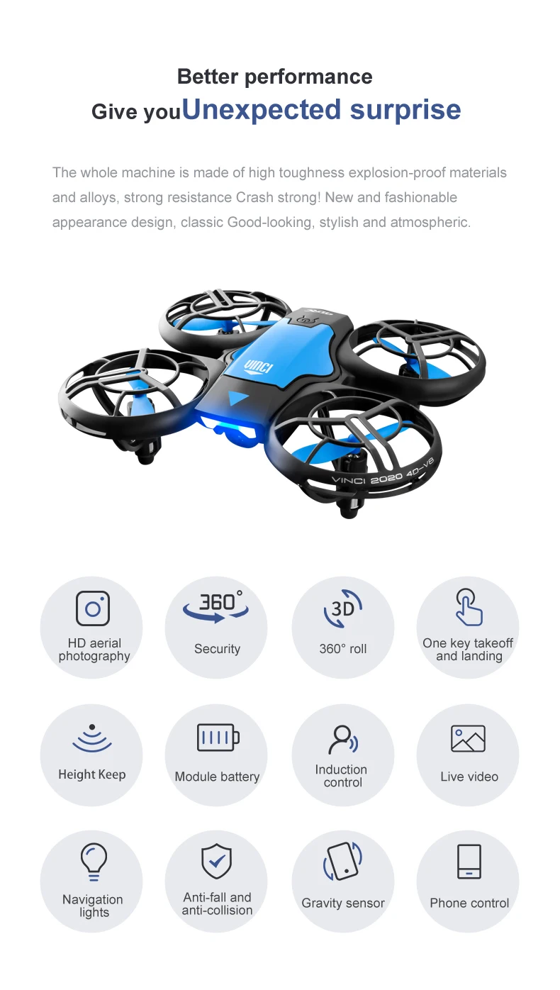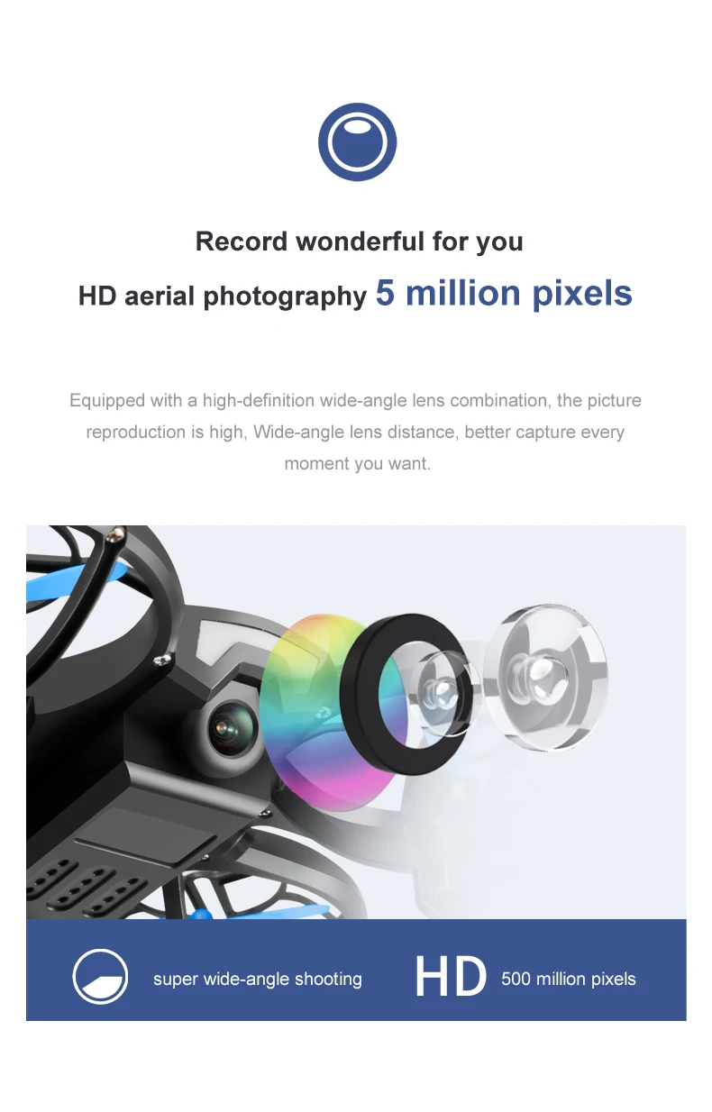 ​- Built-in 30W pixel / 500W pixel /4K pixelHD camera. Surprisingly, it can capture stunning pictures and videos from the sky.