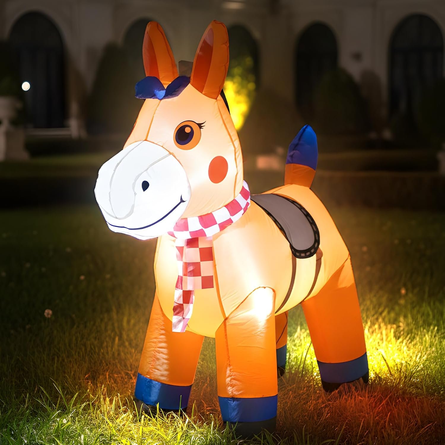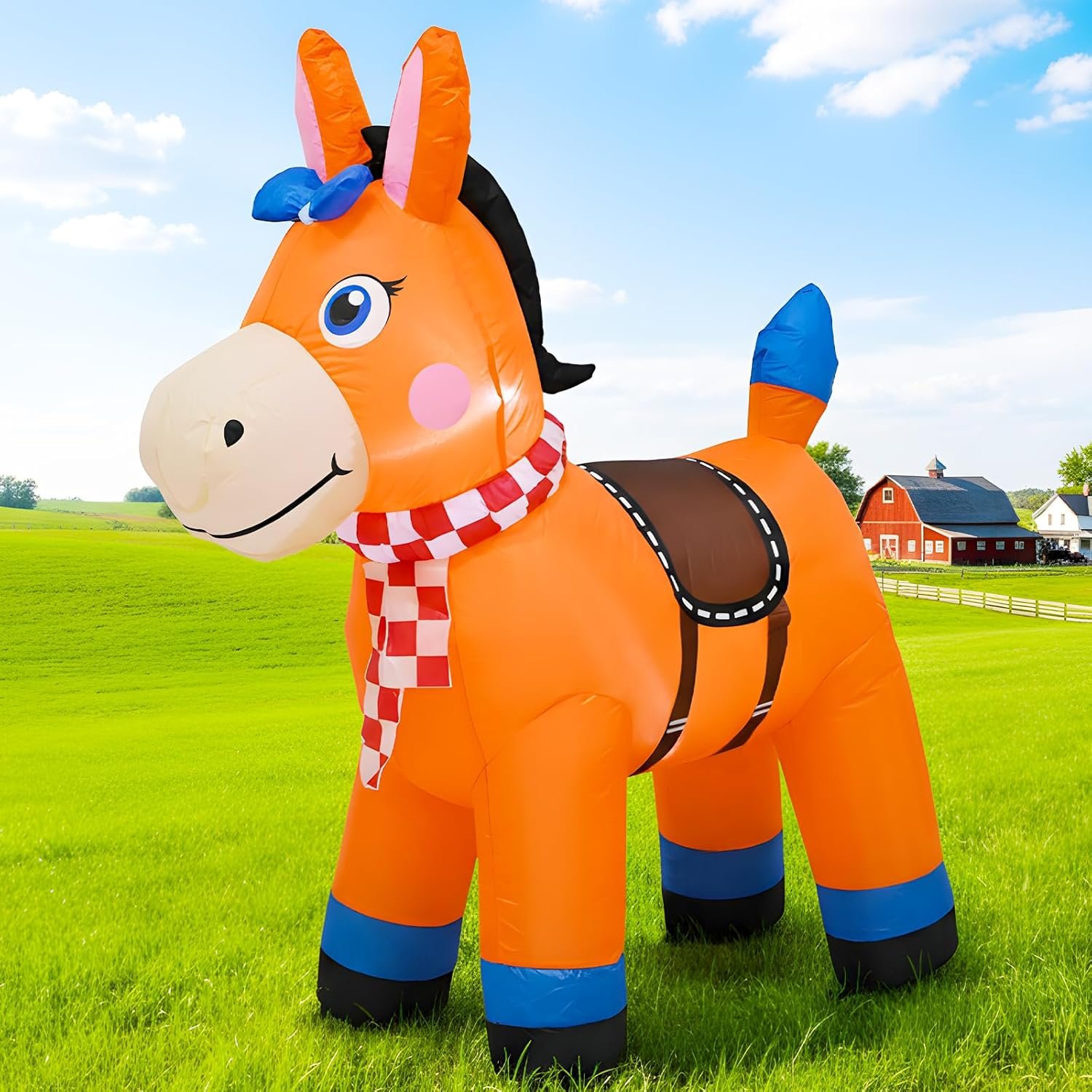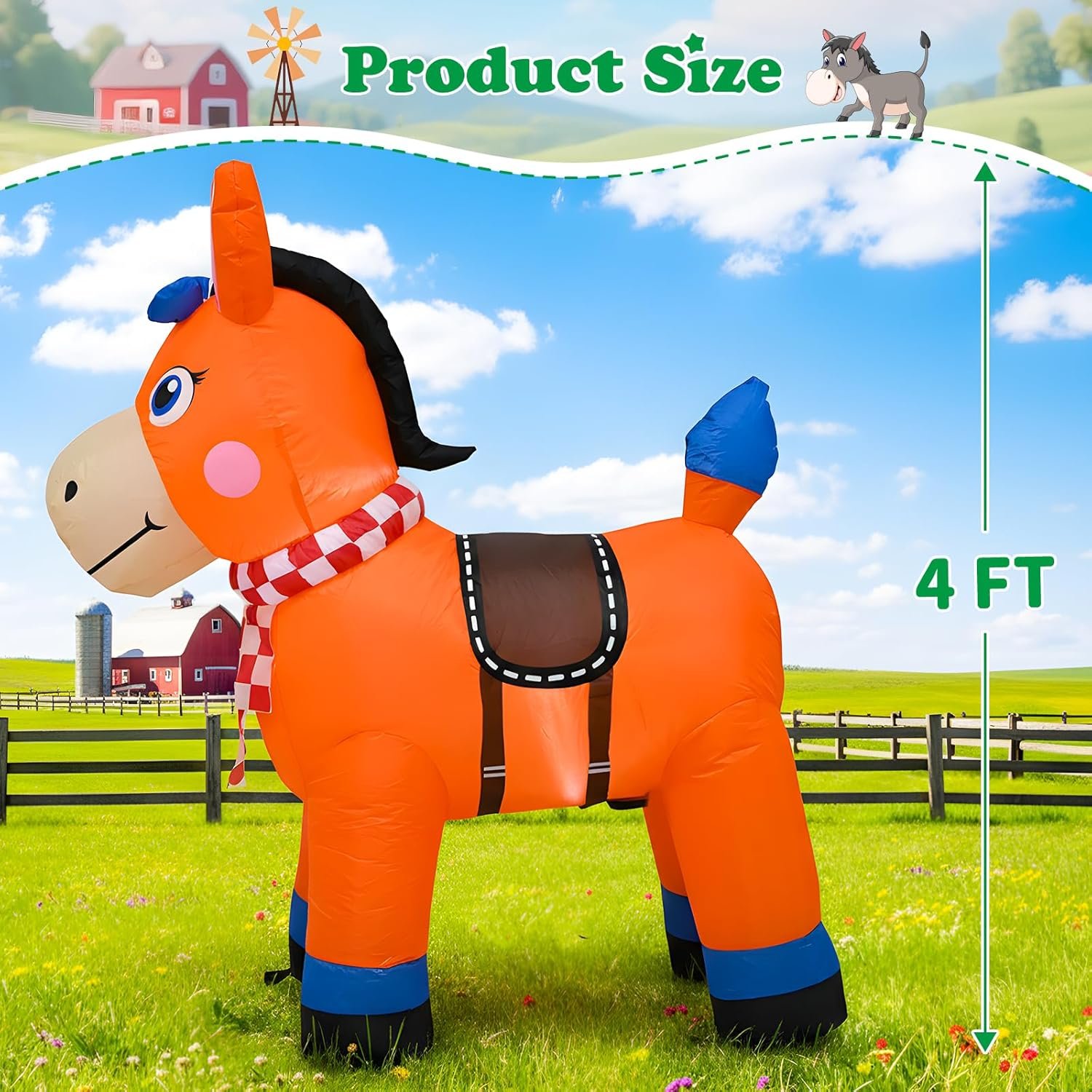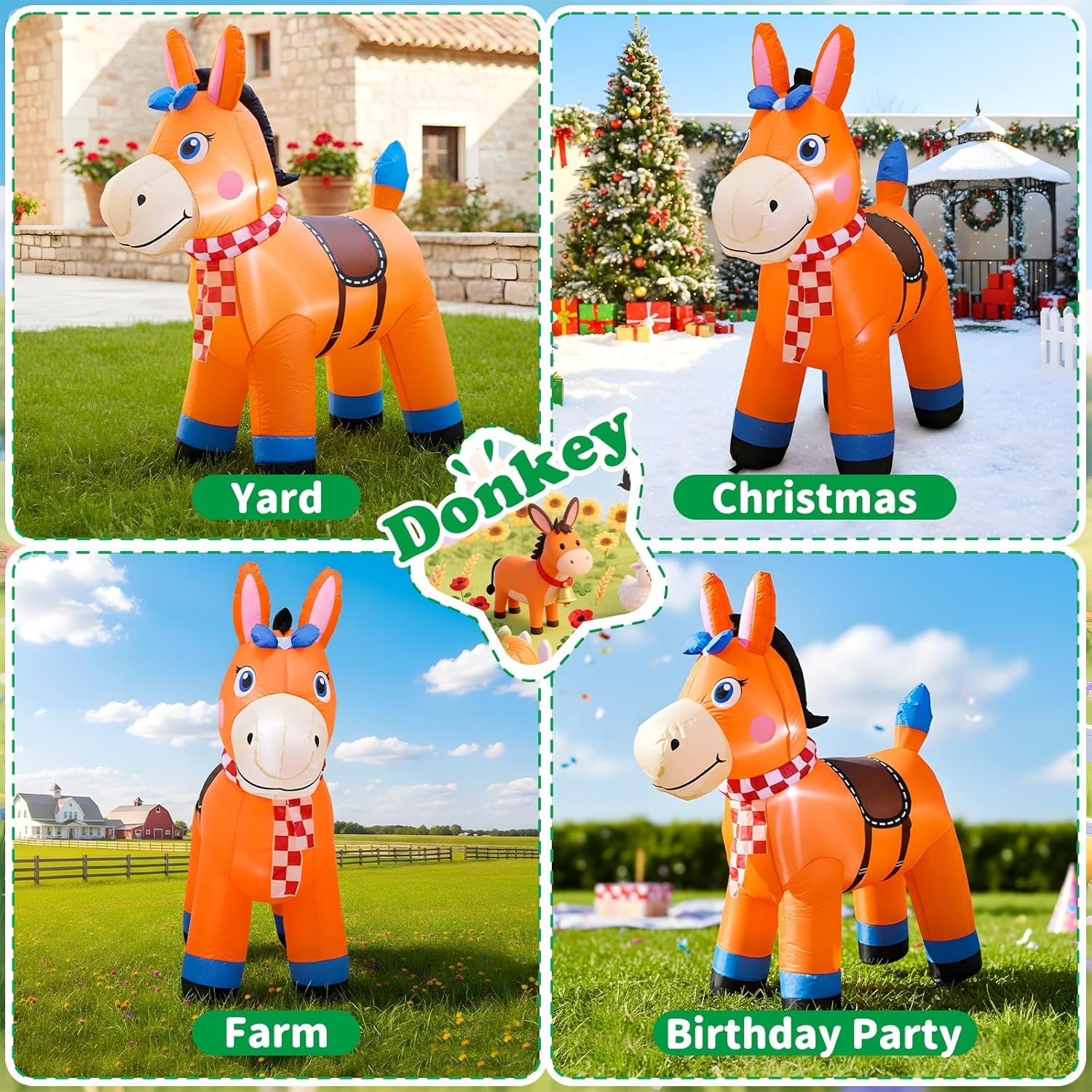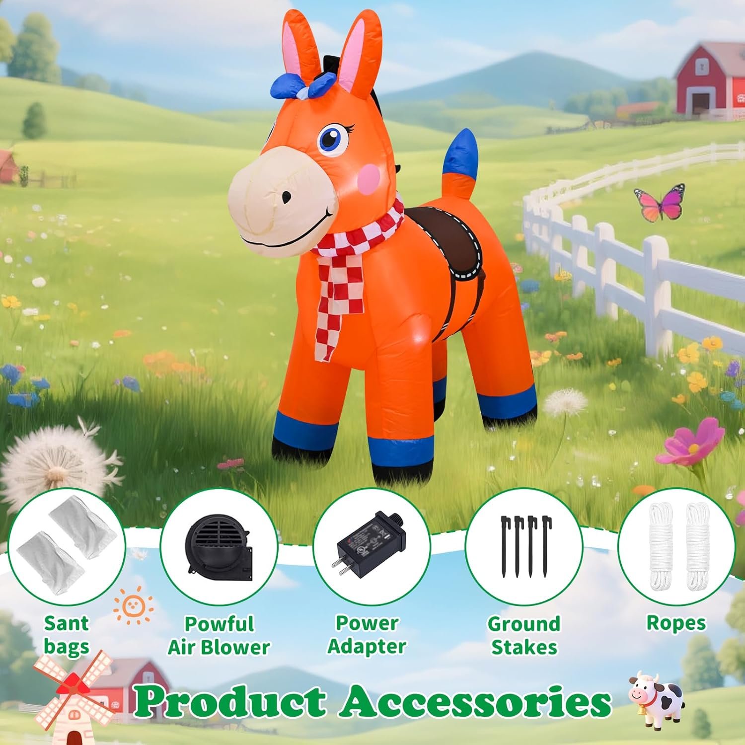 【Excellent Craftsmanship】Our inflatable decor is crafted with exceptional attention to detail. It is constructed using double-coated high-quality fabric, ensuring durability and longevity. With a powerful blower and premium fabrics, the blow up Cute Farm Donkey inflates quickly.