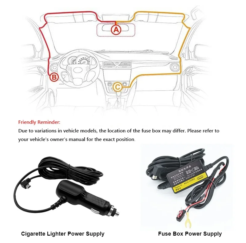 The dashcam requires the power supply we provide to operate stably and reliably. We offer two power supply options for you to choose from: