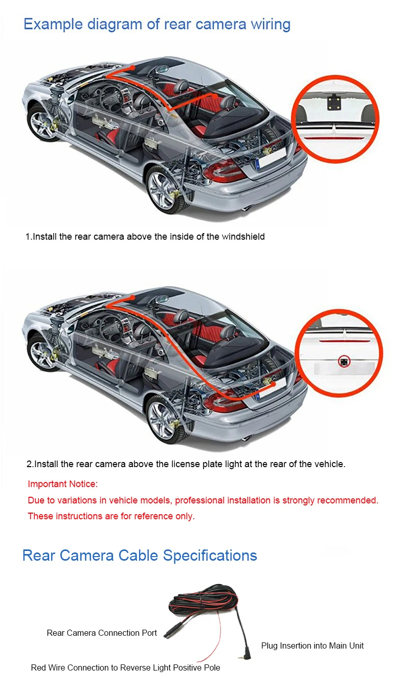 3.We do not recommend using your own power supply and cables. If you encounter issues such as abnormal camera images or the rear camera not displaying, please replace the power supply and cables with ones that meet the requirement of DC 5V/2.5A.