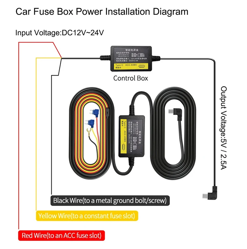 Advantages: Allows continuous recording even when the car is turned off, enabling 24/7 monitoring. Equipped with a dedicated chip that automatically cuts off power when the car battery voltage is low, protecting the battery.