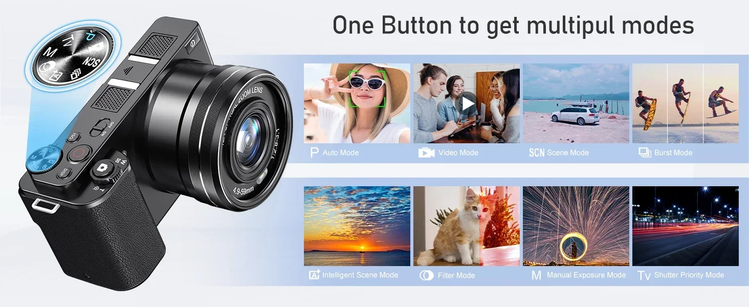 ã€One Button Switch Camera&Auto Focus】With the one button switch point and shoot digital camera, you have never felt photography so simple. Change shooting modes with a single click and quickly adapt them to the scene you’re shooting, so you don’t miss a scene or a smile. The autofocus function ensures that you can take sharp images even when you’re on travel. Every shot become professional one.