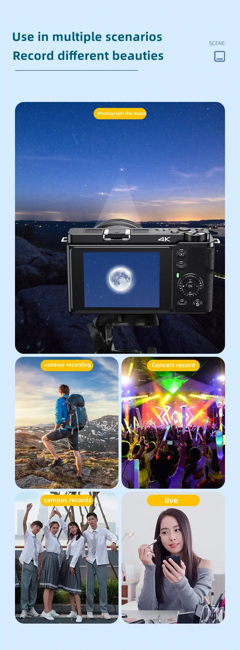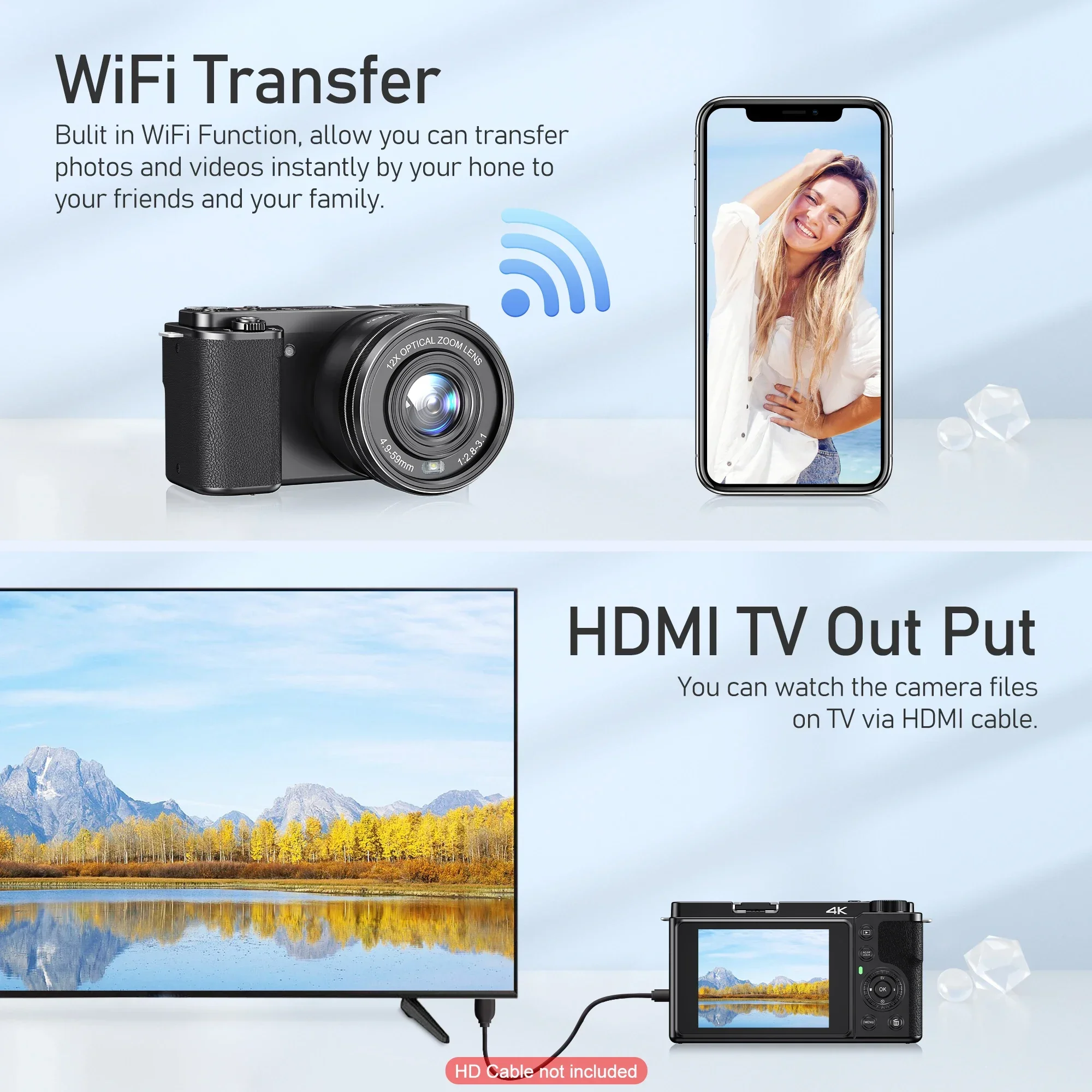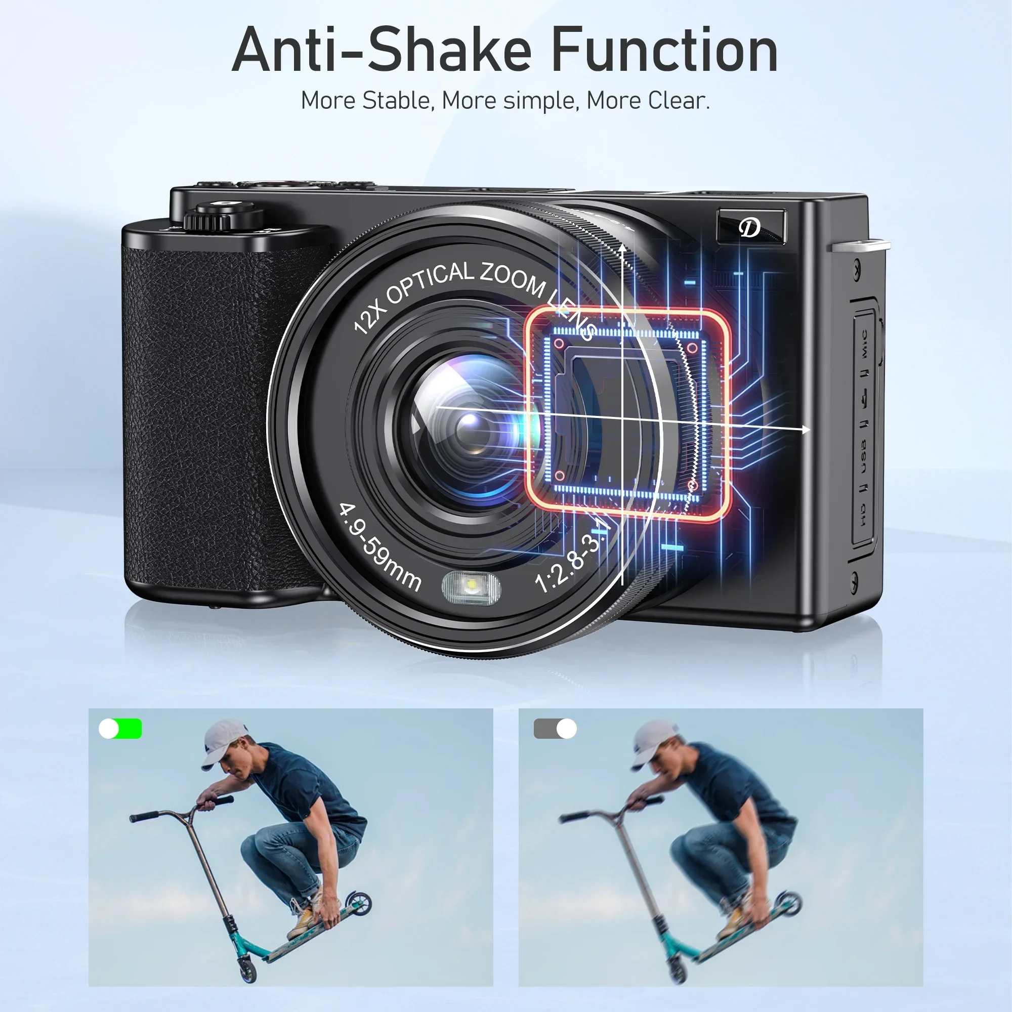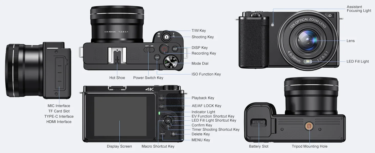 ã€4K 64MP Optical Digital Camera】The 4K digital camera for photography with 12X optical zoom makes it easy to take in the beauty. This unrivalled combination ensures that every detail is captured with ultimate clarity, allowing you to take professional-grade images and experience professional photography at will!