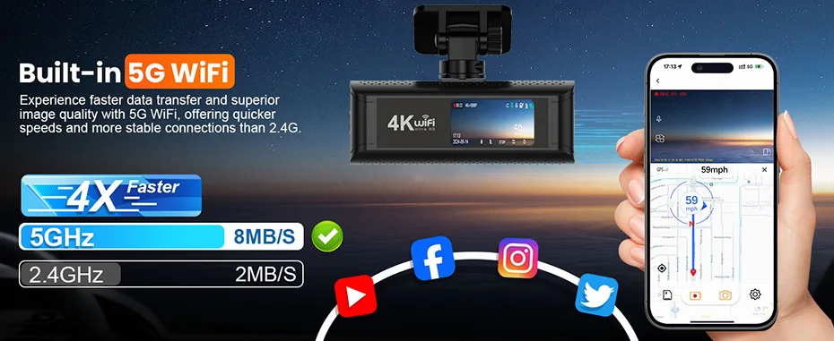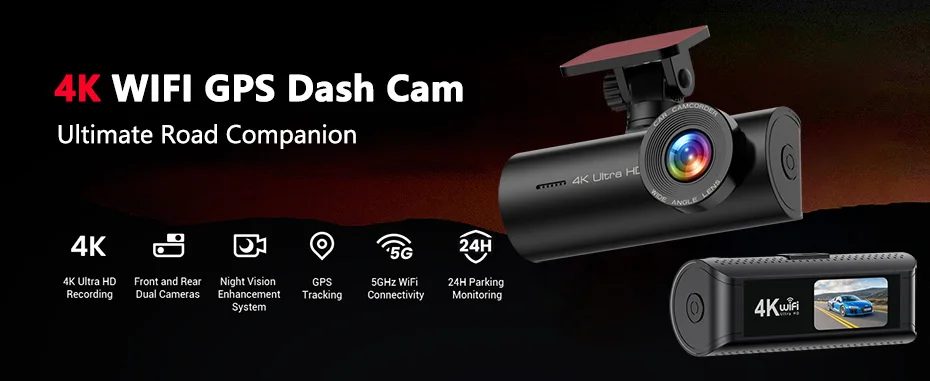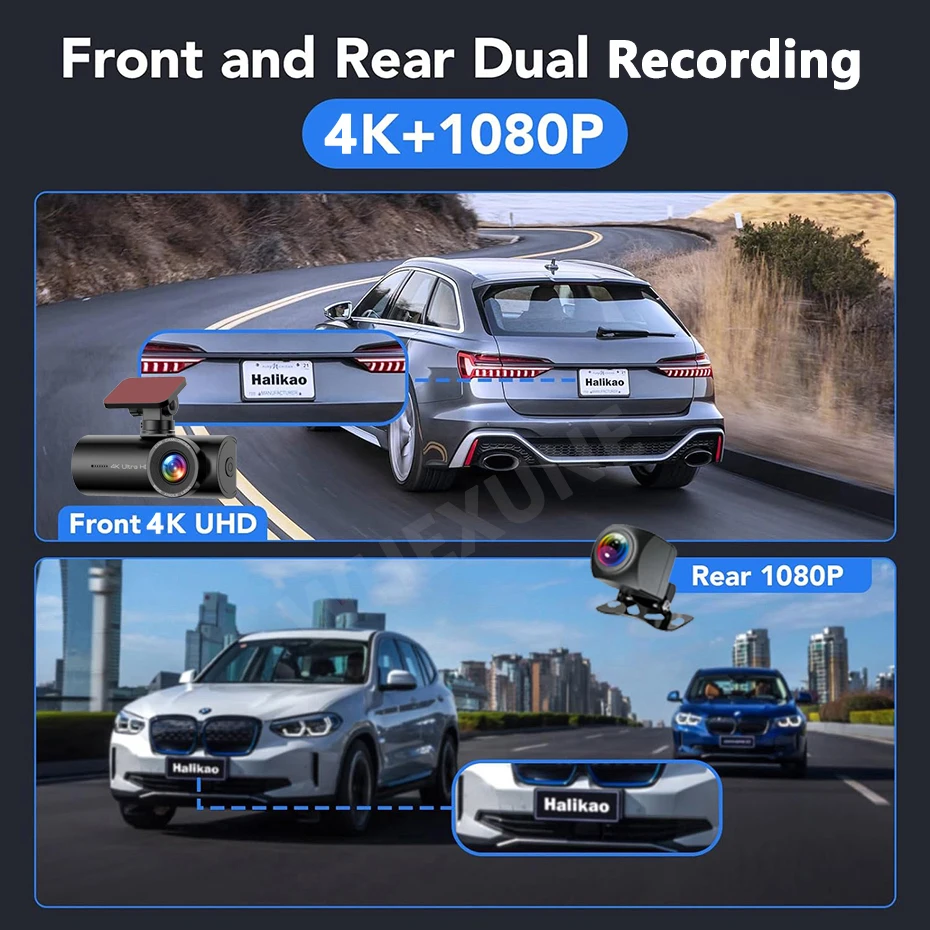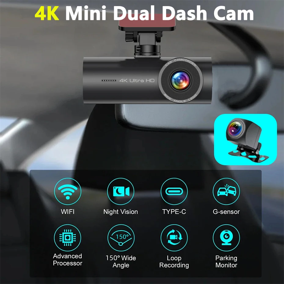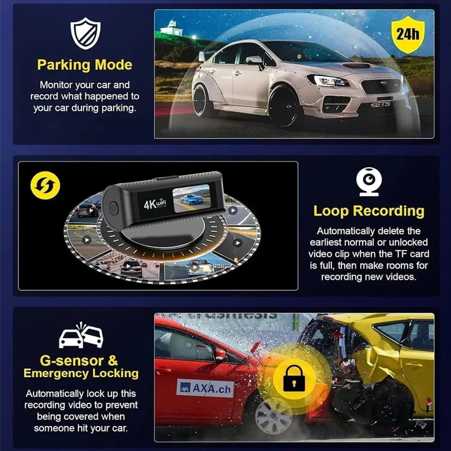 4K WiFi Dash Cam 2160P for Car DVR Camera Dual Lens Auto Night Vision WDR Video Recorder Support GPS Black Box Rear View Camera