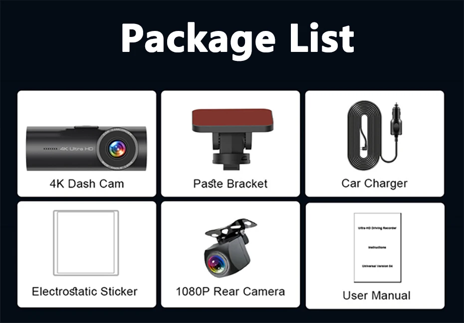2 reviews for 4K WiFi Dash Cam 2160P for Car DVR Camera Dual Lens Auto Night Vision WDR Video Recorder Support GPS Black Box Rear View Camera
