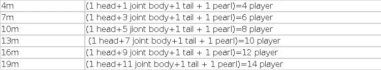 Dragon Head: 1.3kg, 0.5m length,