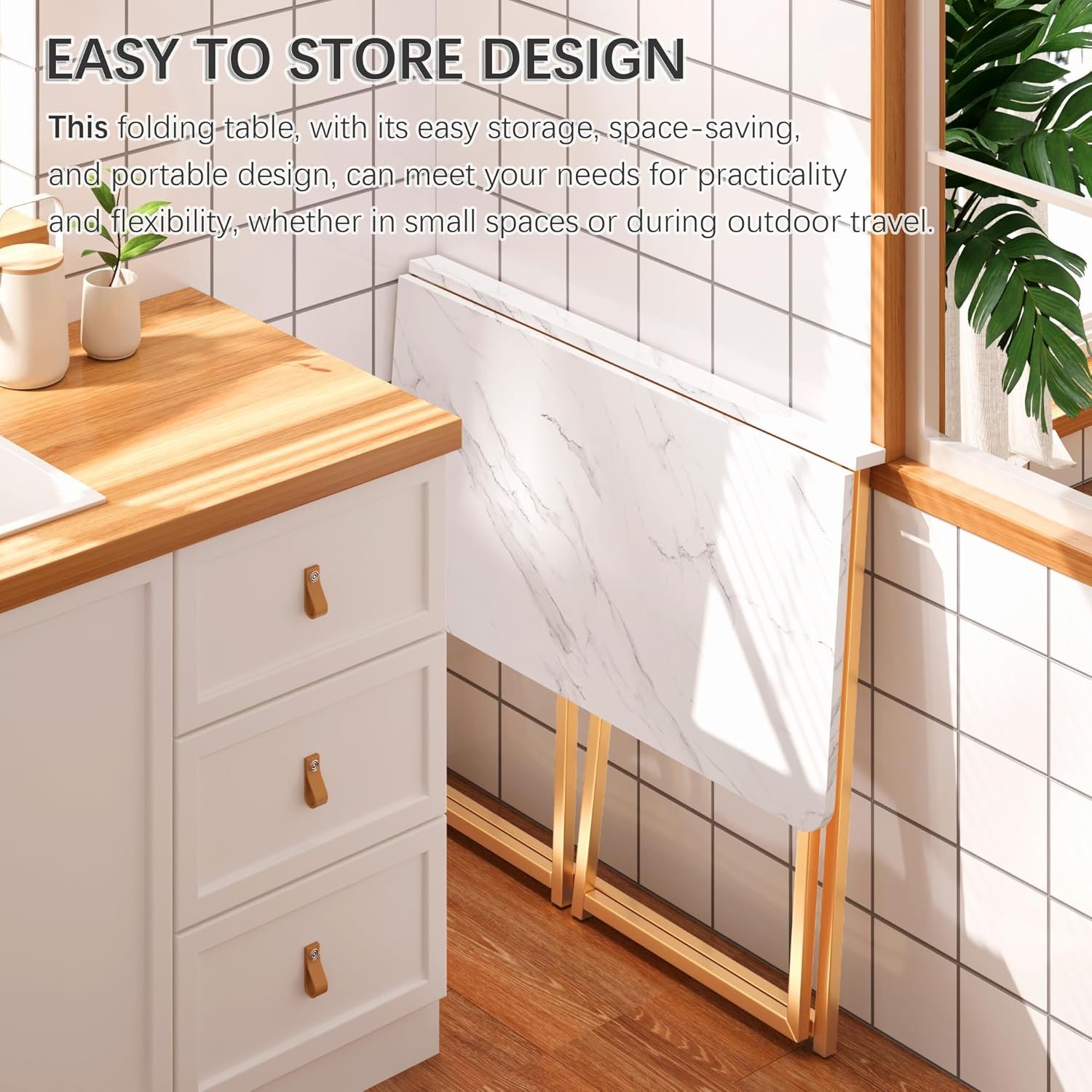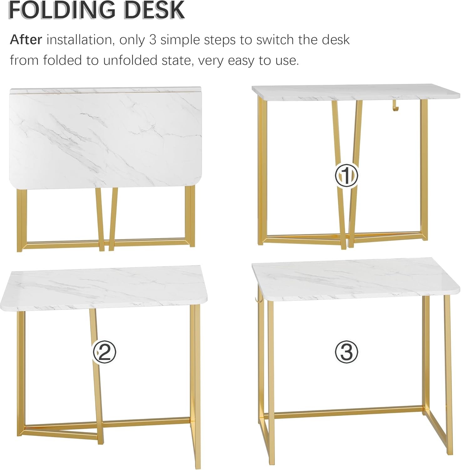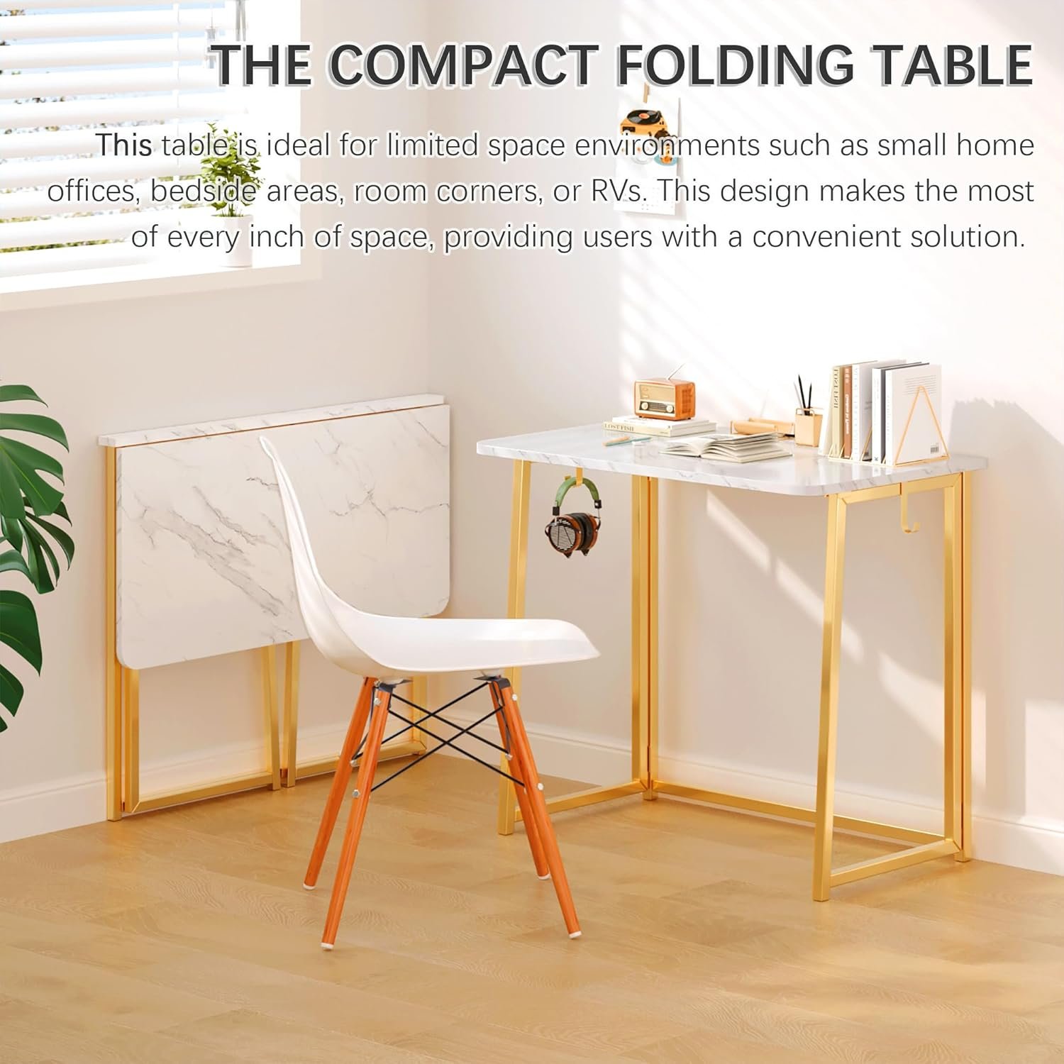 4NM 31.5″ Small Folding Desk, Simple Assembly Computer Desk Home Office Desk Study Writing Table for Small Space Offices – White and Golden