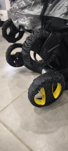2 reviews for 4pcs Black Polyester Stroller Wheel Covers – Dust Resistant, Easy to Clean, Ruffled Design for Home Entrance & Outdoor Use