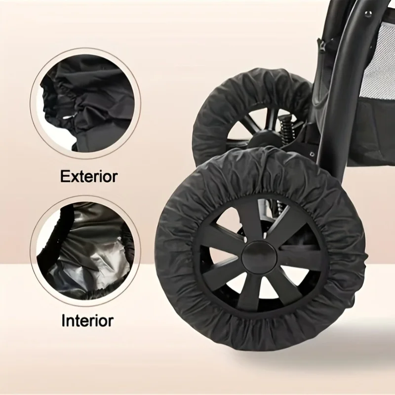 4pcs Black Polyester Stroller Wheel Covers – Dust Resistant, Easy to Clean, Ruffled Design for Home Entrance & Outdoor Use