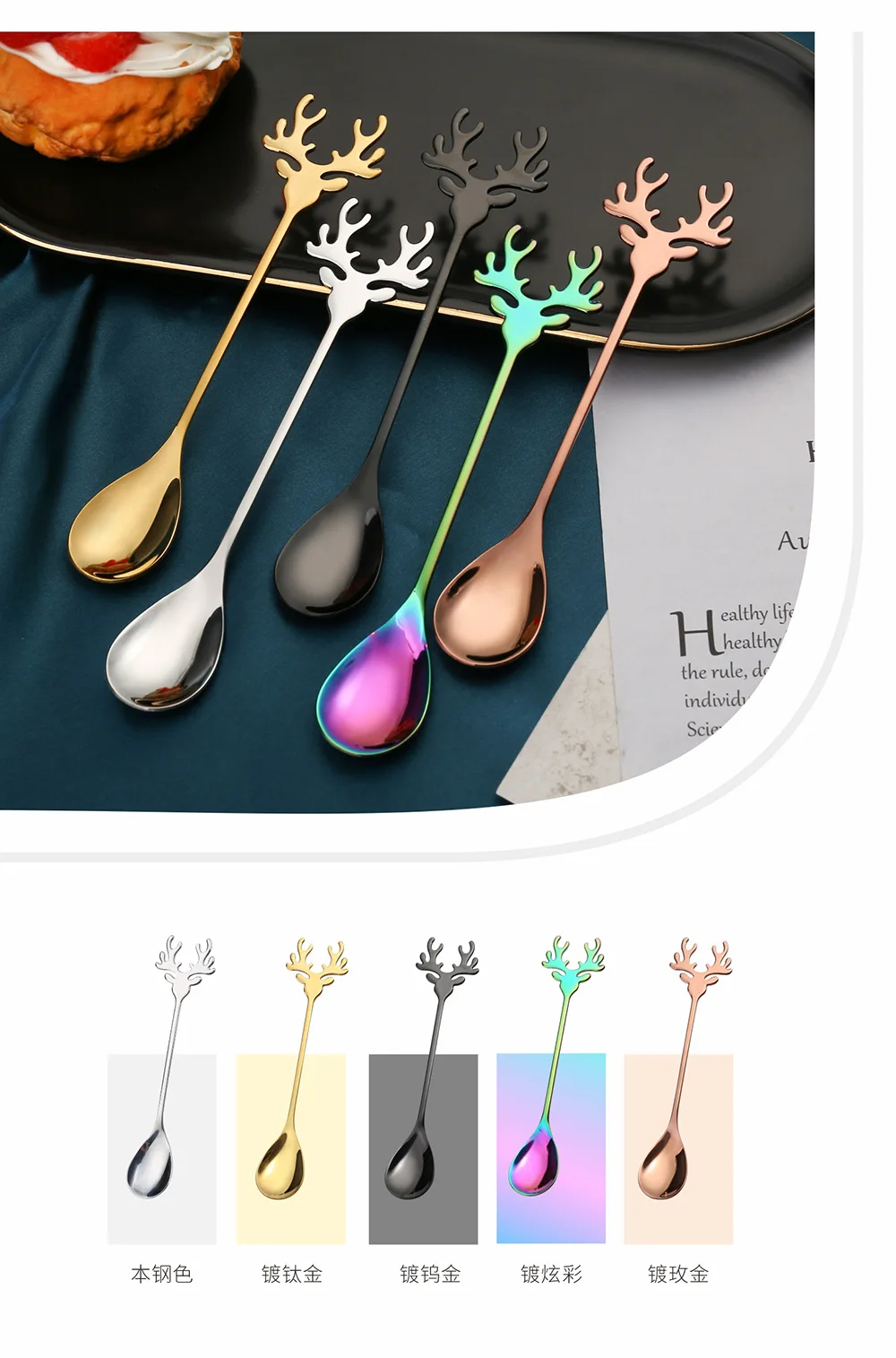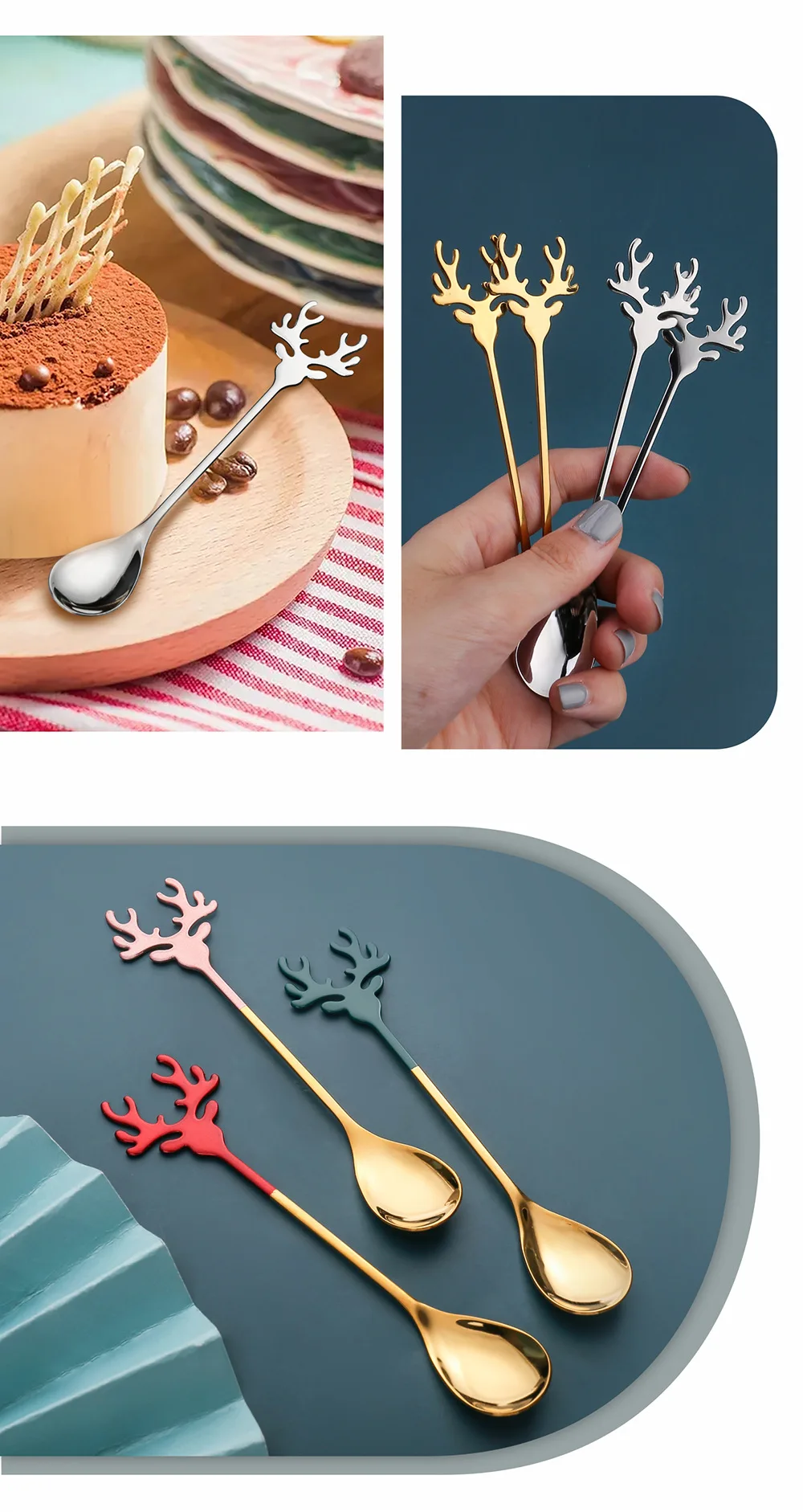 10 reviews for 4pcs Christmas Elk Head Shape Stainless Coffee Spoon New Year 2024 Christmas Decoration Table Decor for Home Navidad 2023 Gifts
