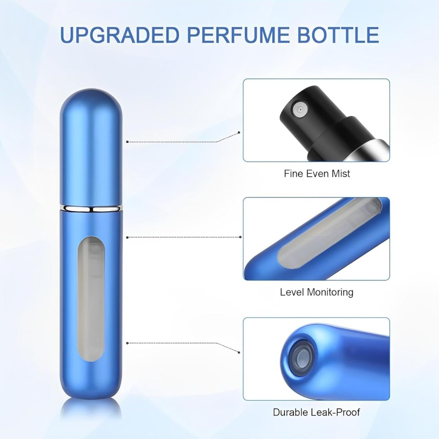 Sturdy and leak-proof: The outer casing of our refillable perfume bottle travel is made of high-quality aluminum, providing durability and preventing deformation. The inner tank is made of strong safety-grade plastic, ensuring it won’t easily break or leak.