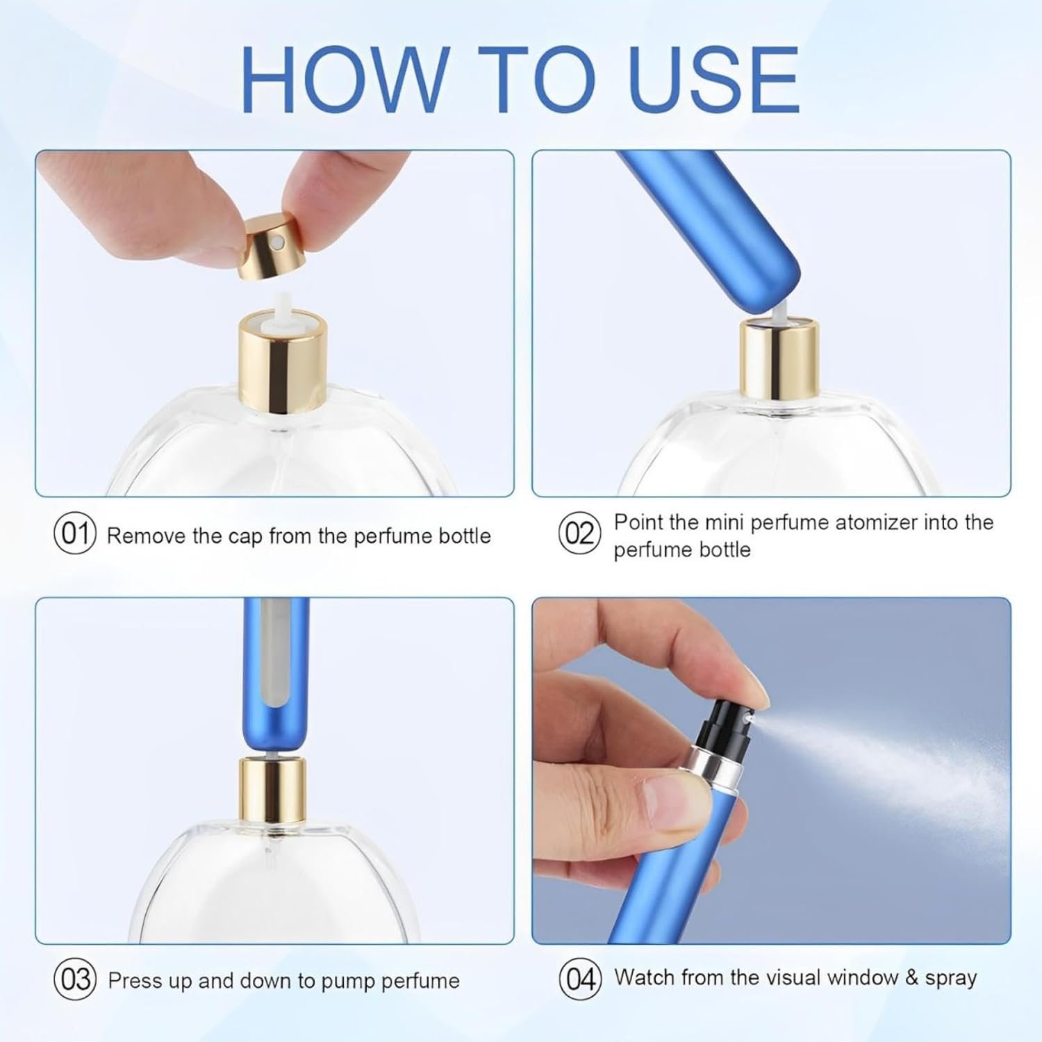 Our 4PCS mini perfume refillable bottle Set, the perfect solution for staying fresh on the go. Say goodbye to bulky perfume bottles and hello to convenience and portability.