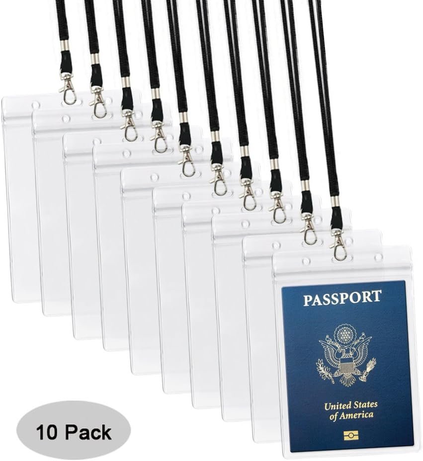 4x6Inch Extra Large Passport Holders ID Badge PVC Card Holder with Lanyards Fill for Passports by ALMHPVC (10Pack Black Lanyards)