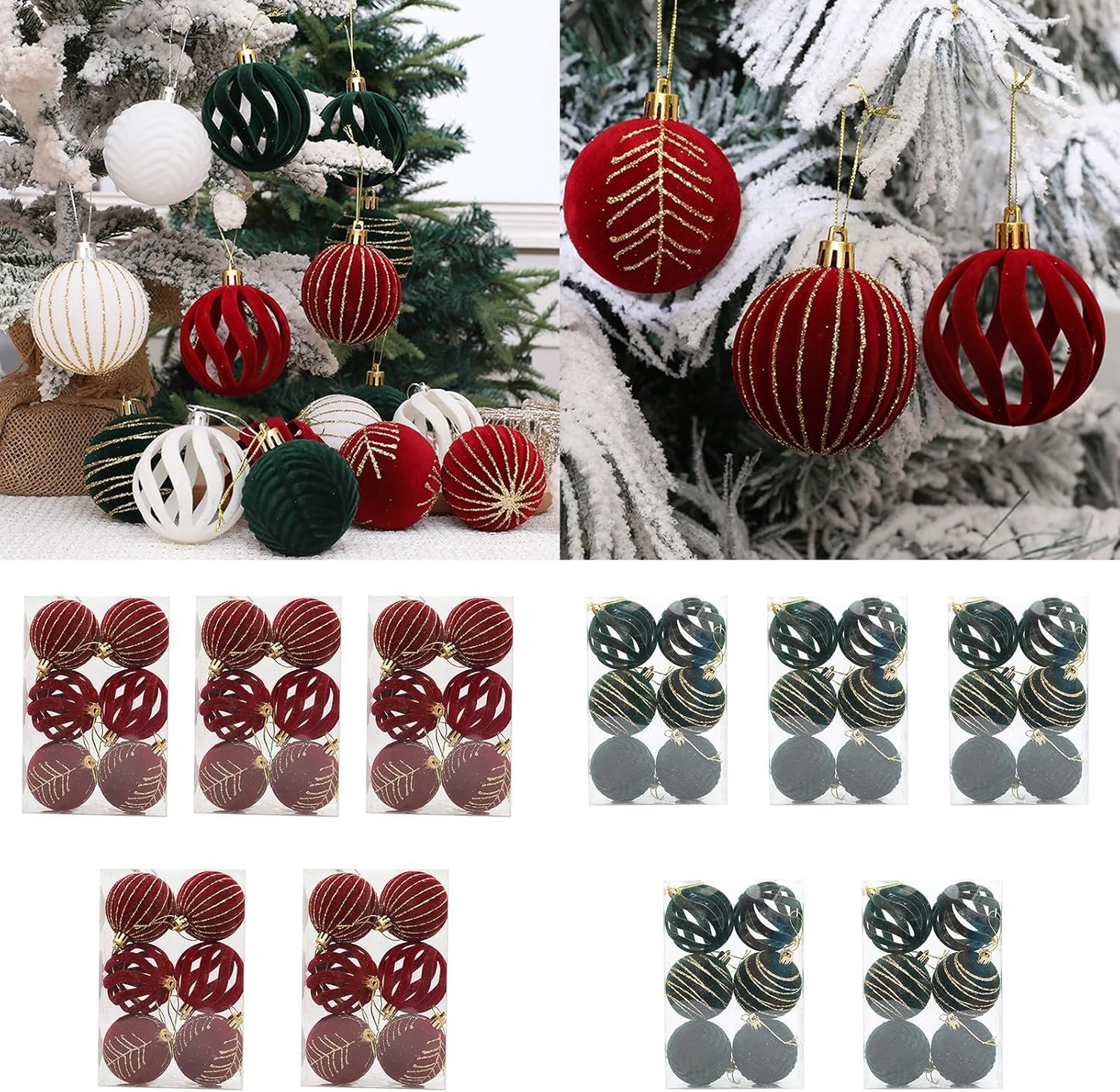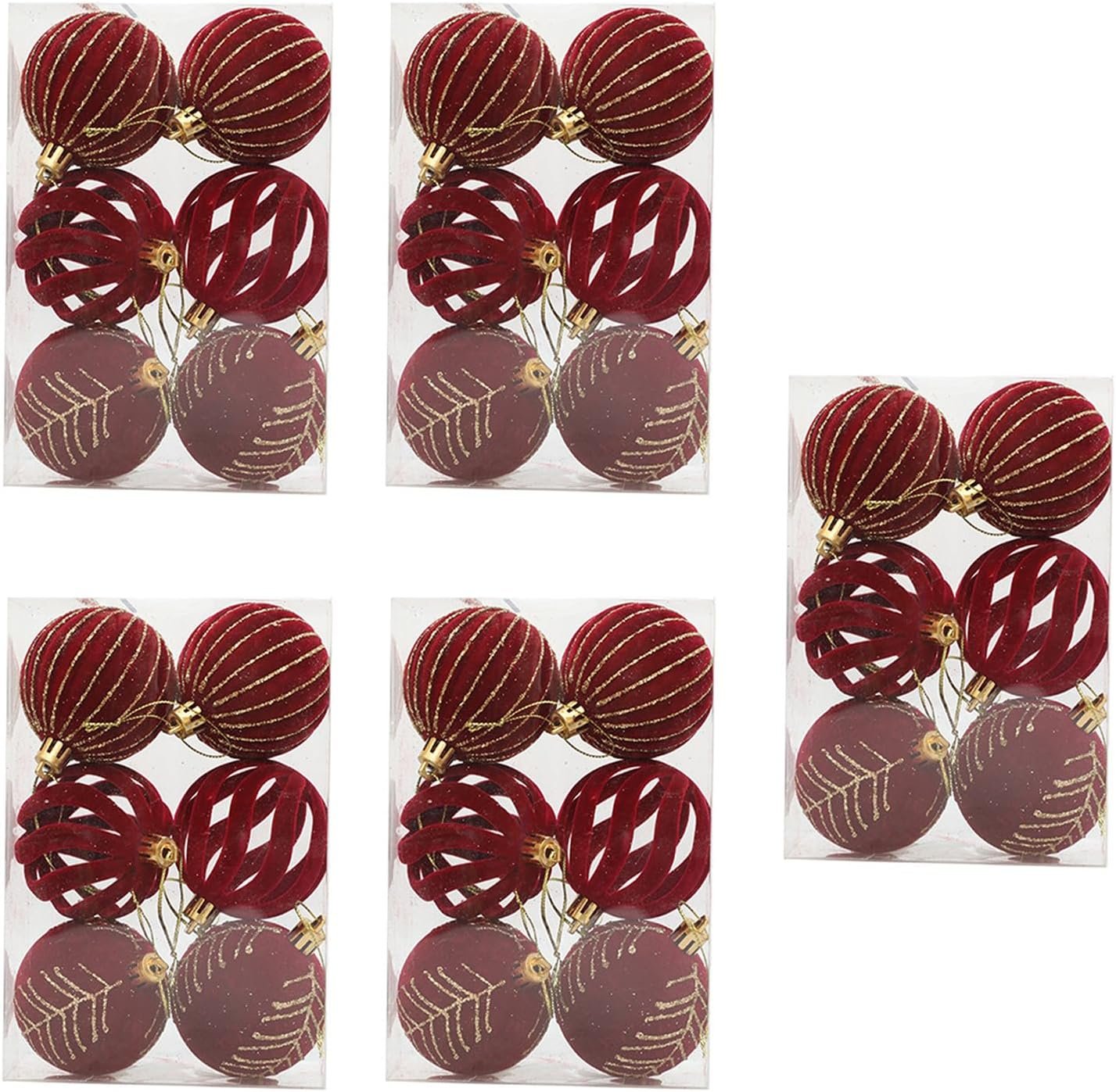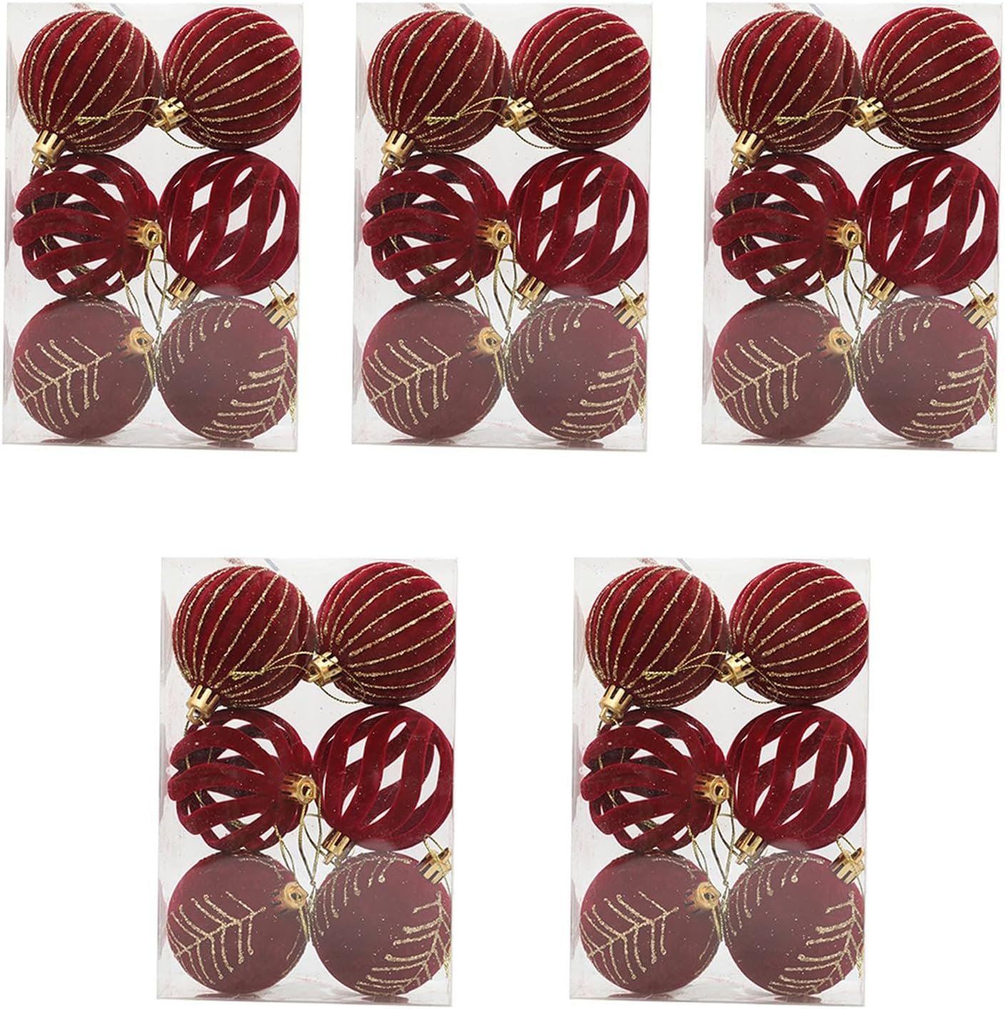 5 Boxes Elegant Christmas Tree Ornaments Velvets Flocking Baubles Stylish Hanging Pendant for Holiday Decorations