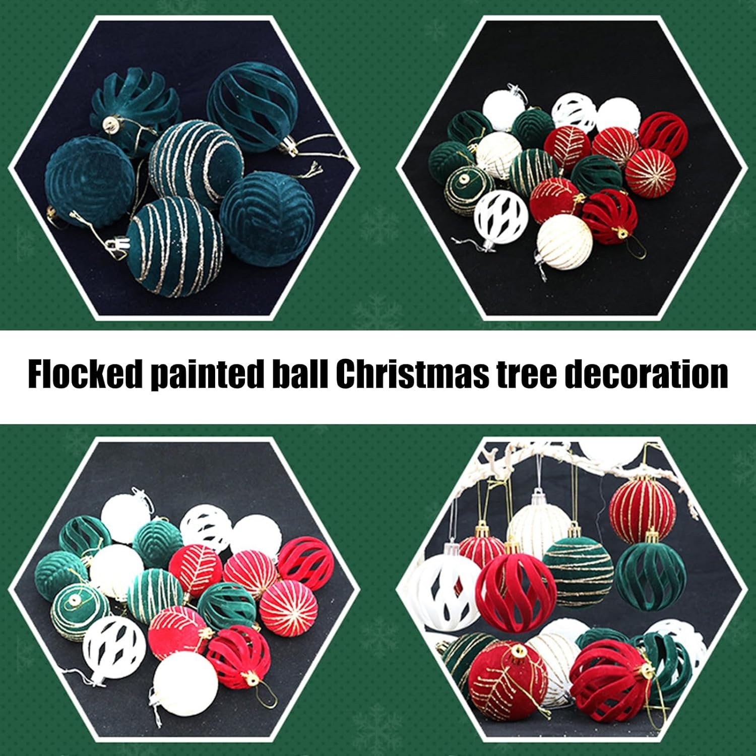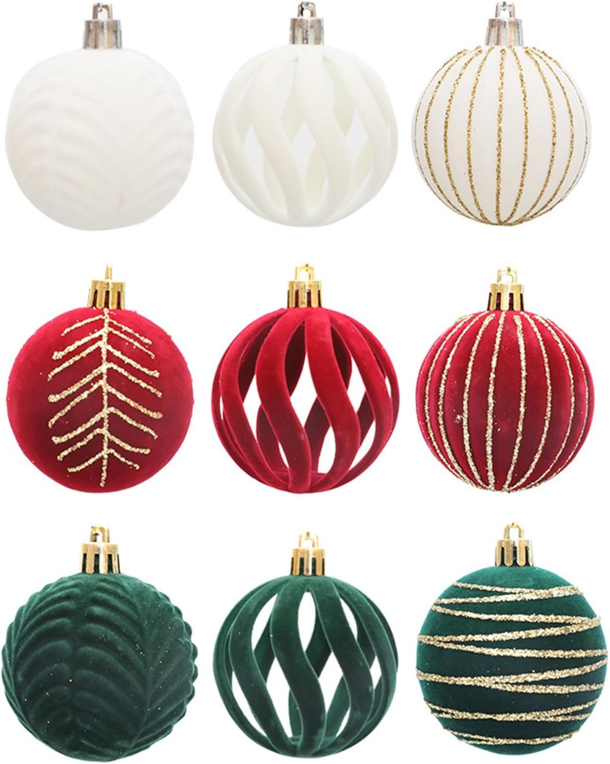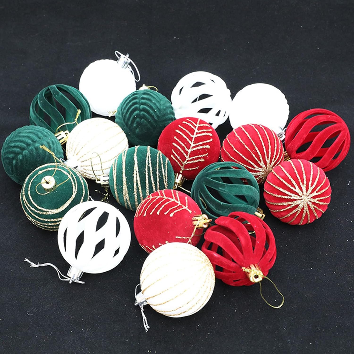 5 Boxes Elegant Christmas Tree Ornaments Velvets Flocking Baubles Stylish Hanging Pendant for Holiday Decorations