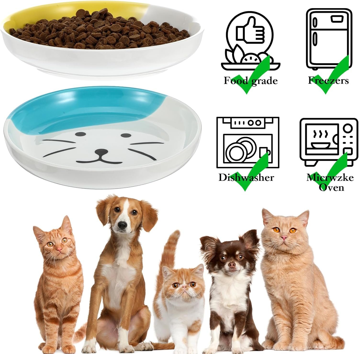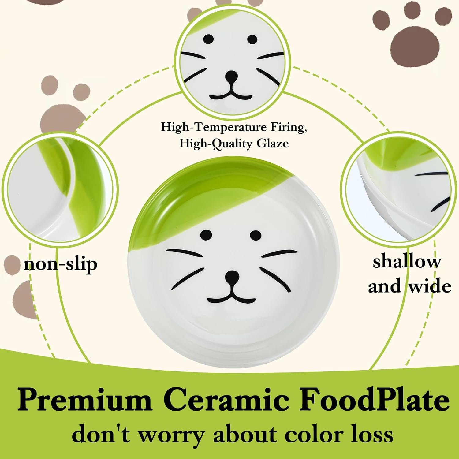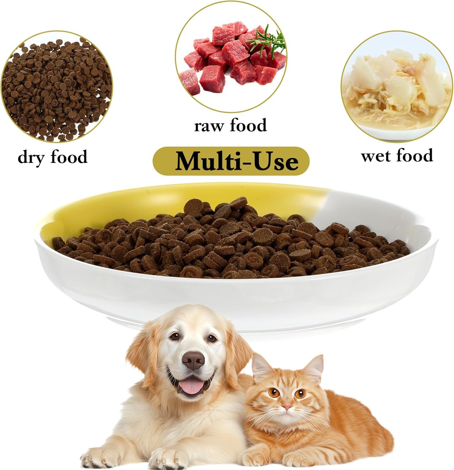 Safe & Food-Grade Ceramic Material: The cat dish made of high-temperature fired food-grade ceramic smooth surface cadmium-free,non-toxic and hygienic,sturdy and stable.No worry about scratch residual dirt and color loss, unlike plastic alternatives.
