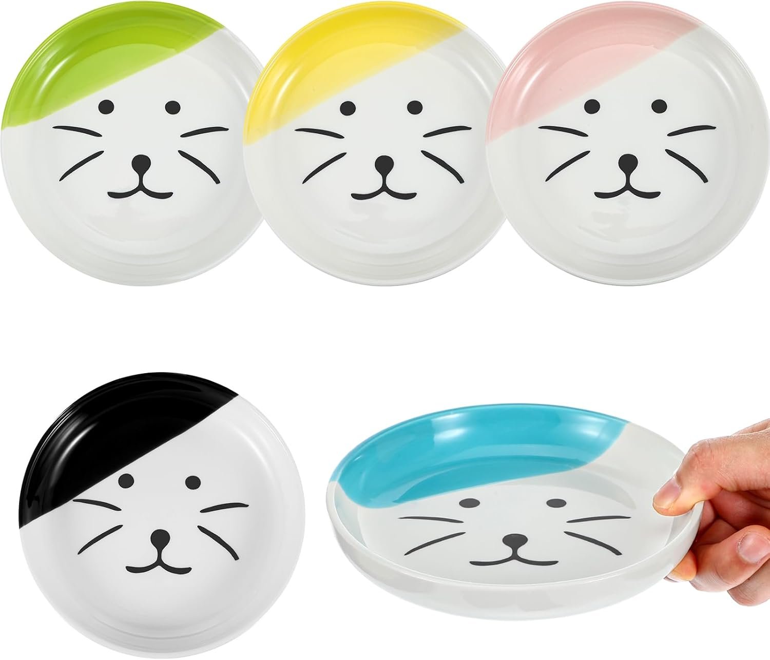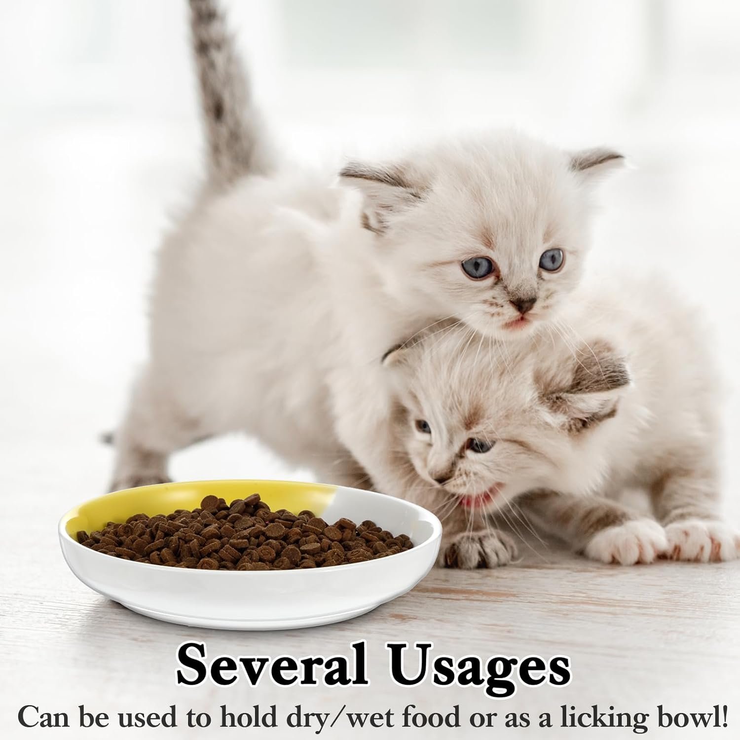 Multi-Use: Package comes in a set of 5 different color cat plates, with anti-slip rubber stickers, the shallow cat plate is suitable for wet and dry food and raw meat, perfect for all age cats and other pets, such as puppies, Maltese, rabbits and hamsters.
