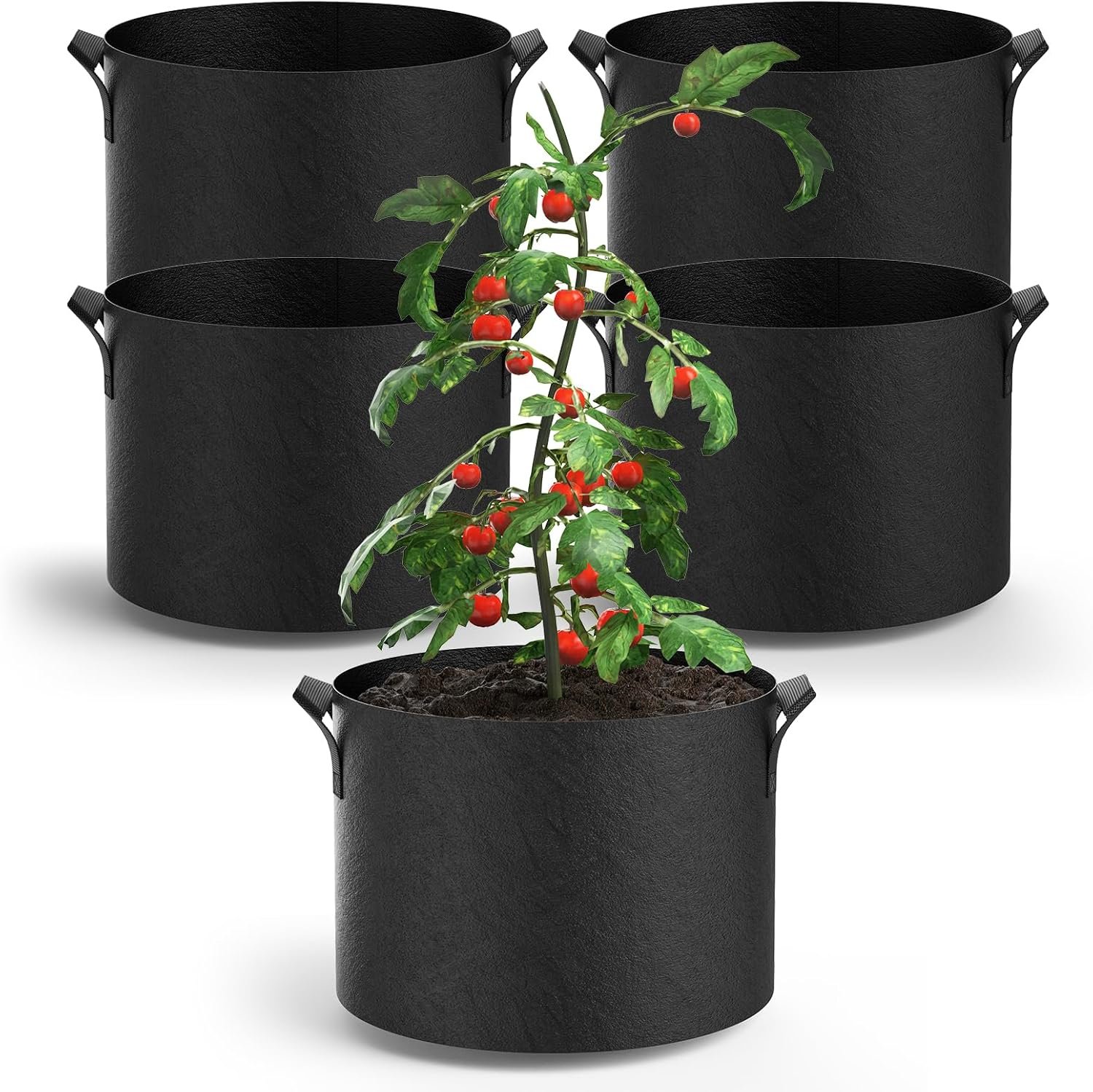 5-Pack Grow Bags 5 Gallon Thickened Plant Grow Bags Multi-Purpose Nonwoven Fabric Pots with Durable Handles, Outdoor Garden Plant Pots for Fruits Vegetables Flowers Herb Bonsai Plants, Black