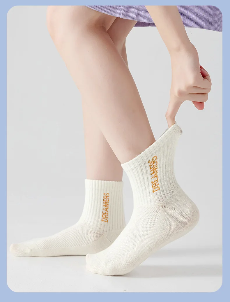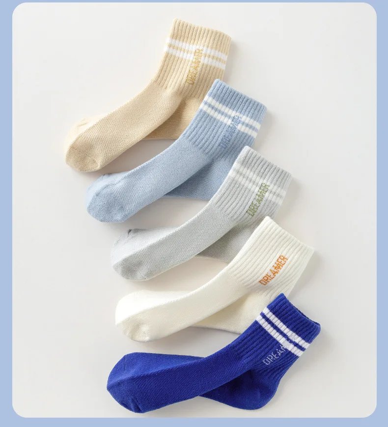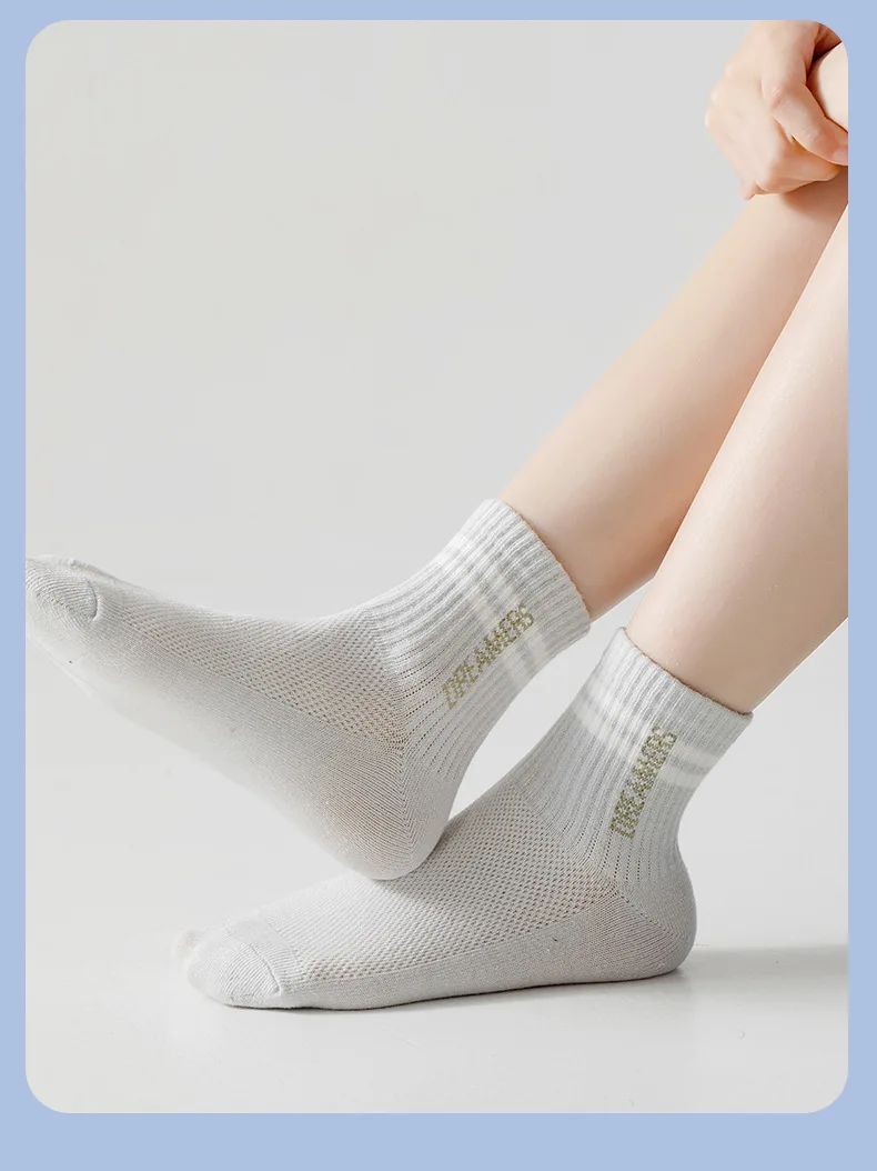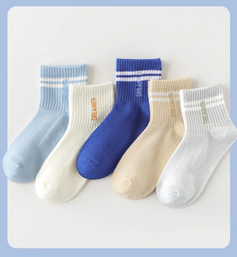 5 Pairs Children’s Socks Spring Summer Thin Sports Cotton Socks Mesh Breathable Boys Girls Letter Print Casual Student Socks