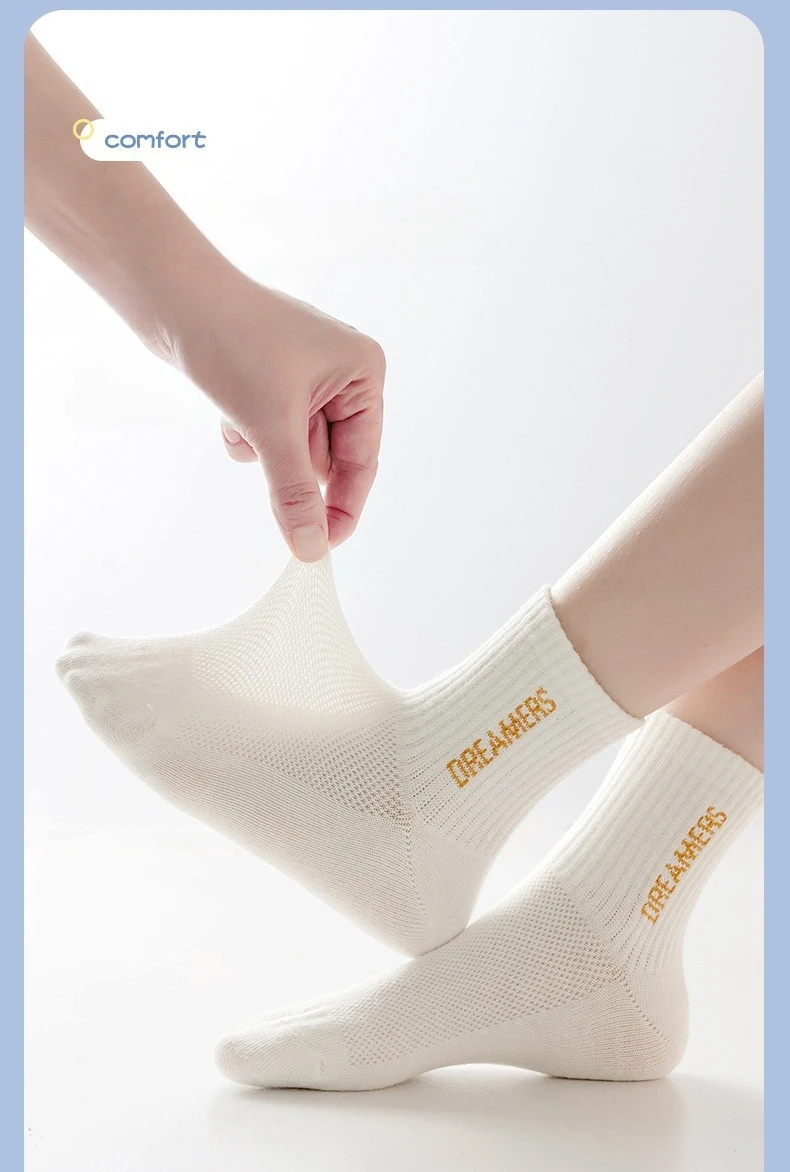 1 review for 5 Pairs Children’s Socks Spring Summer Thin Sports Cotton Socks Mesh Breathable Boys Girls Letter Print Casual Student Socks