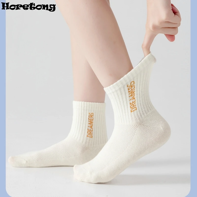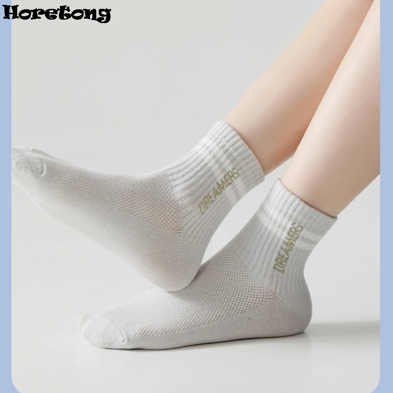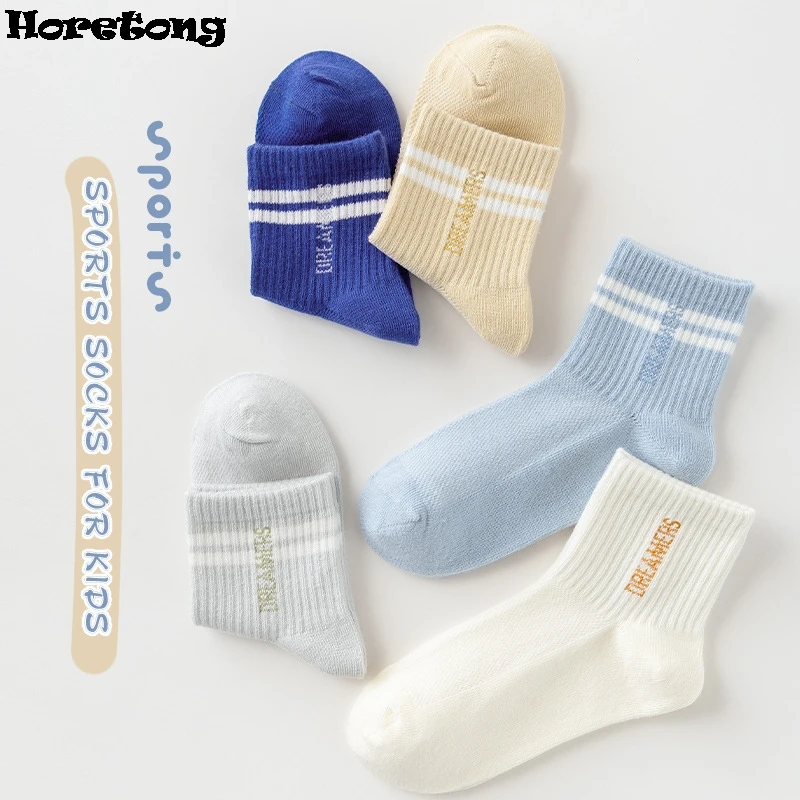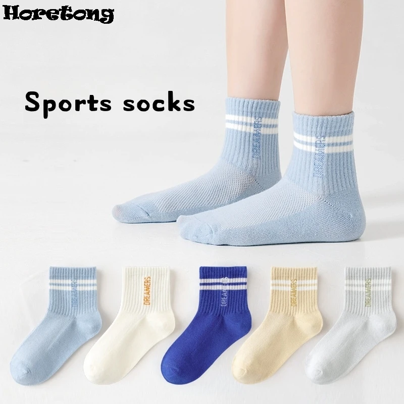 5 Pairs Children’s Socks Spring Summer Thin Sports Cotton Socks Mesh Breathable Boys Girls Letter Print Casual Student Socks