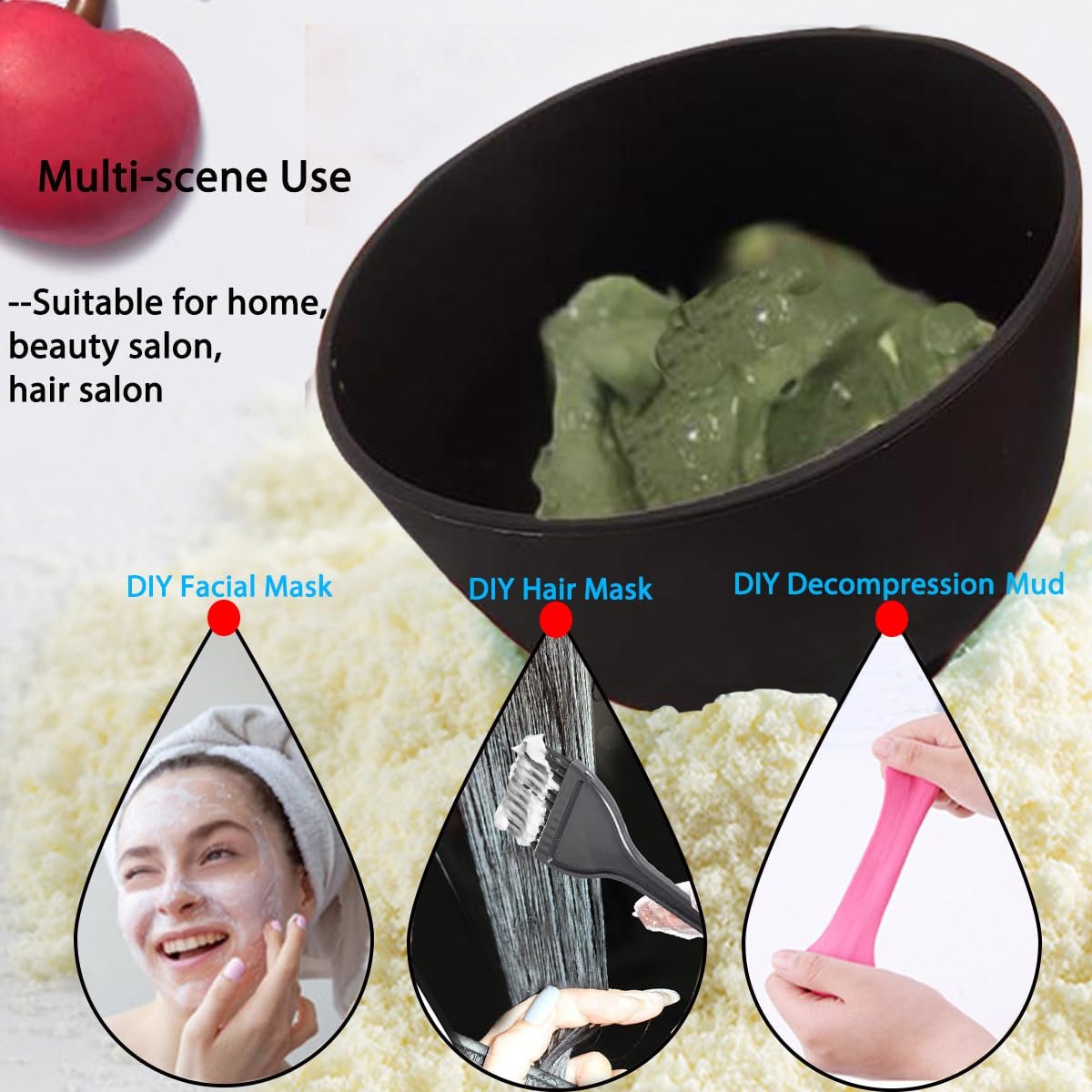 Multi-Purpose Diy Face Mask Mixing Bowl: Perfect for mixing and applying clay masks, DIY facial treatments, lotions, and creams, these silicone bowls are incredibly versatile. They can also be used as storage for spices, herbs, or even mixing hair dye, making them an essential tool for both skincare enthusiasts and culinary aficionados alike.