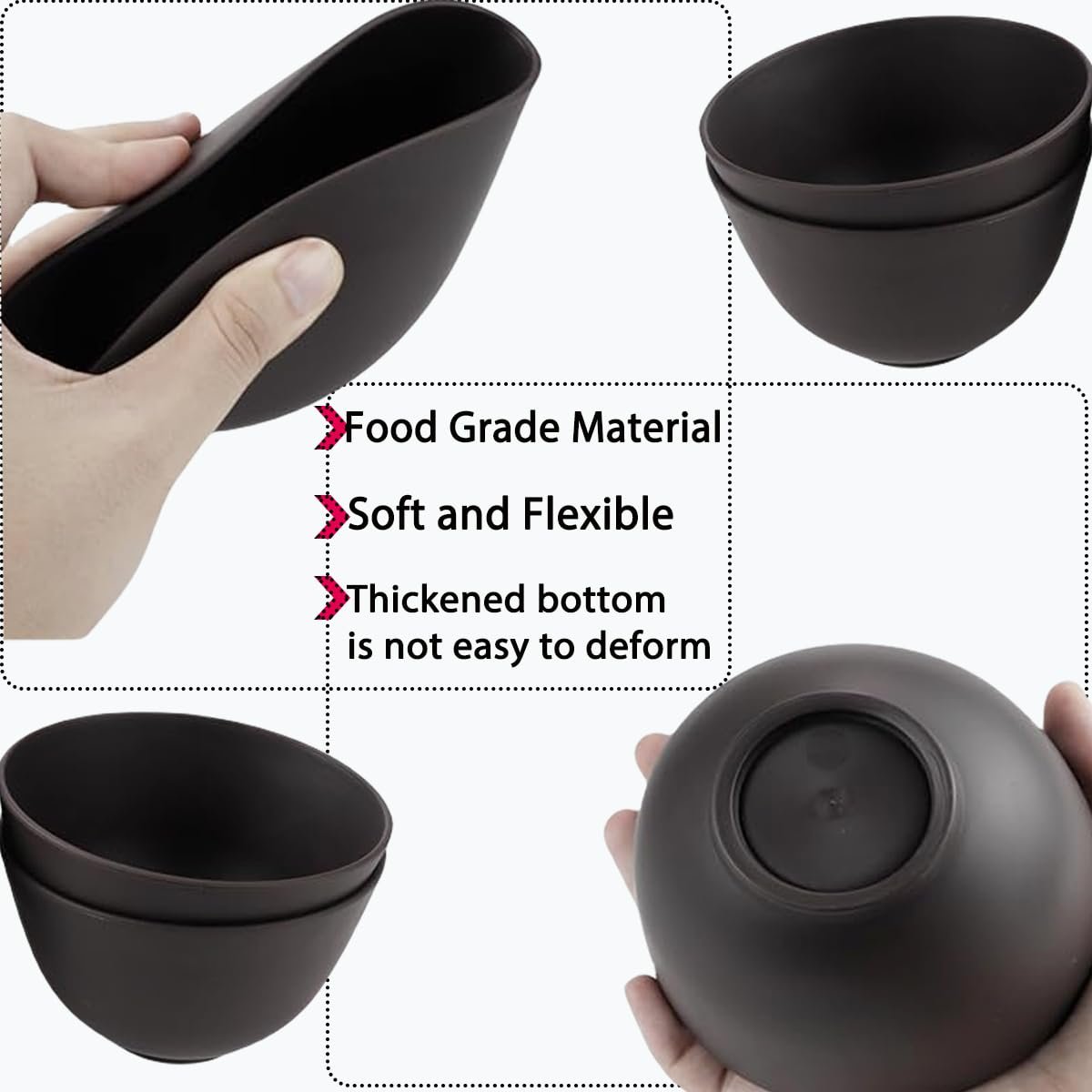 4. Easy to Clean: The non-stick surface of the silicone bowls makes cleanup a breeze—just rinse with water, and they’re ready for your next use. They are also reusable and won’t fade over time.
