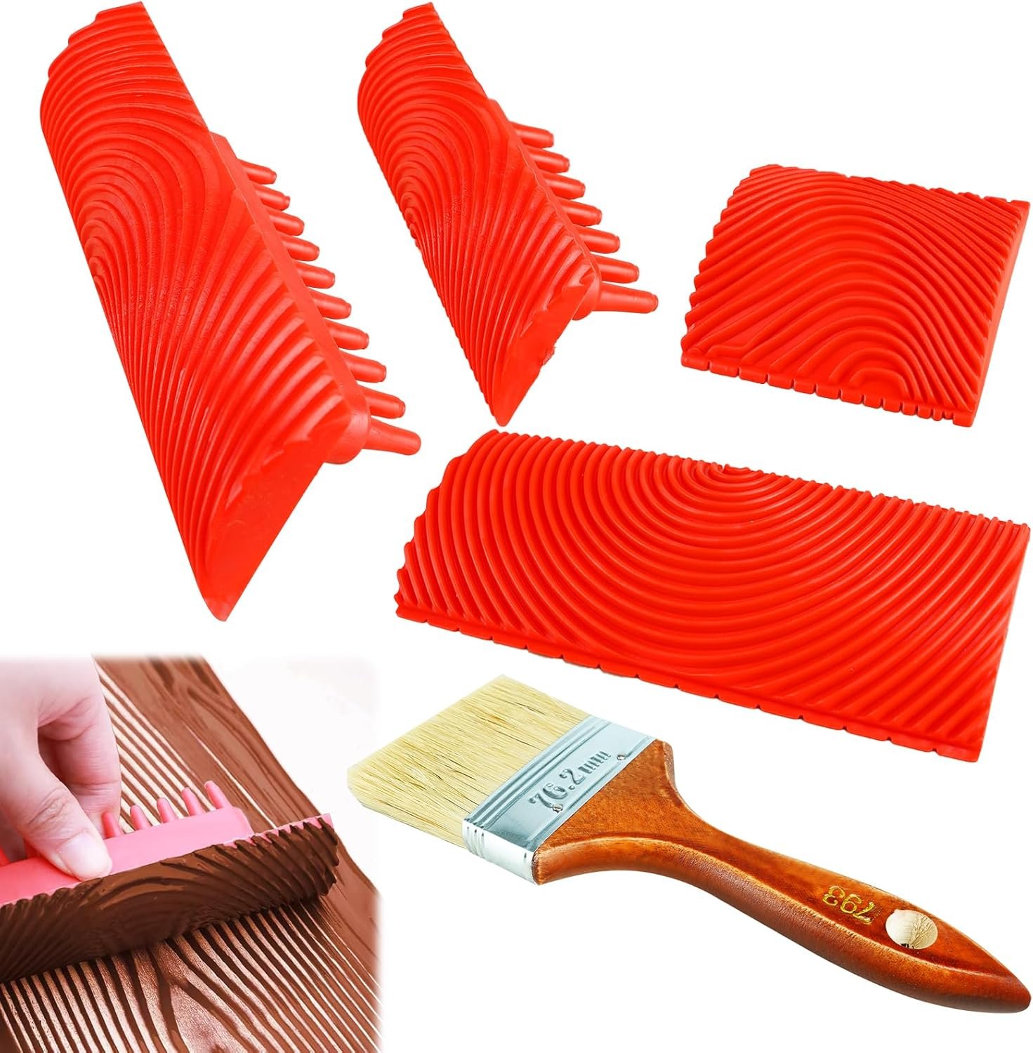 5 Pcs Wood Graining Tools, Soft Rubber Wood Graining Knurling Tool DIY Painting Look Like Natural Wood Grain Brushes Wood Pattern Faux Wood Texture for Decorative Painting