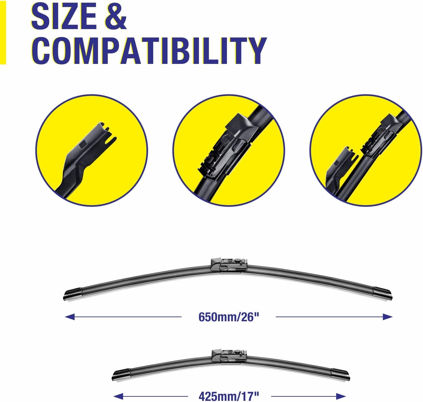 【Metal base】 The metal base is stronger than the plastic base, and the high quality material is suitable for all kinds of extreme weather to make the wiper last longer.