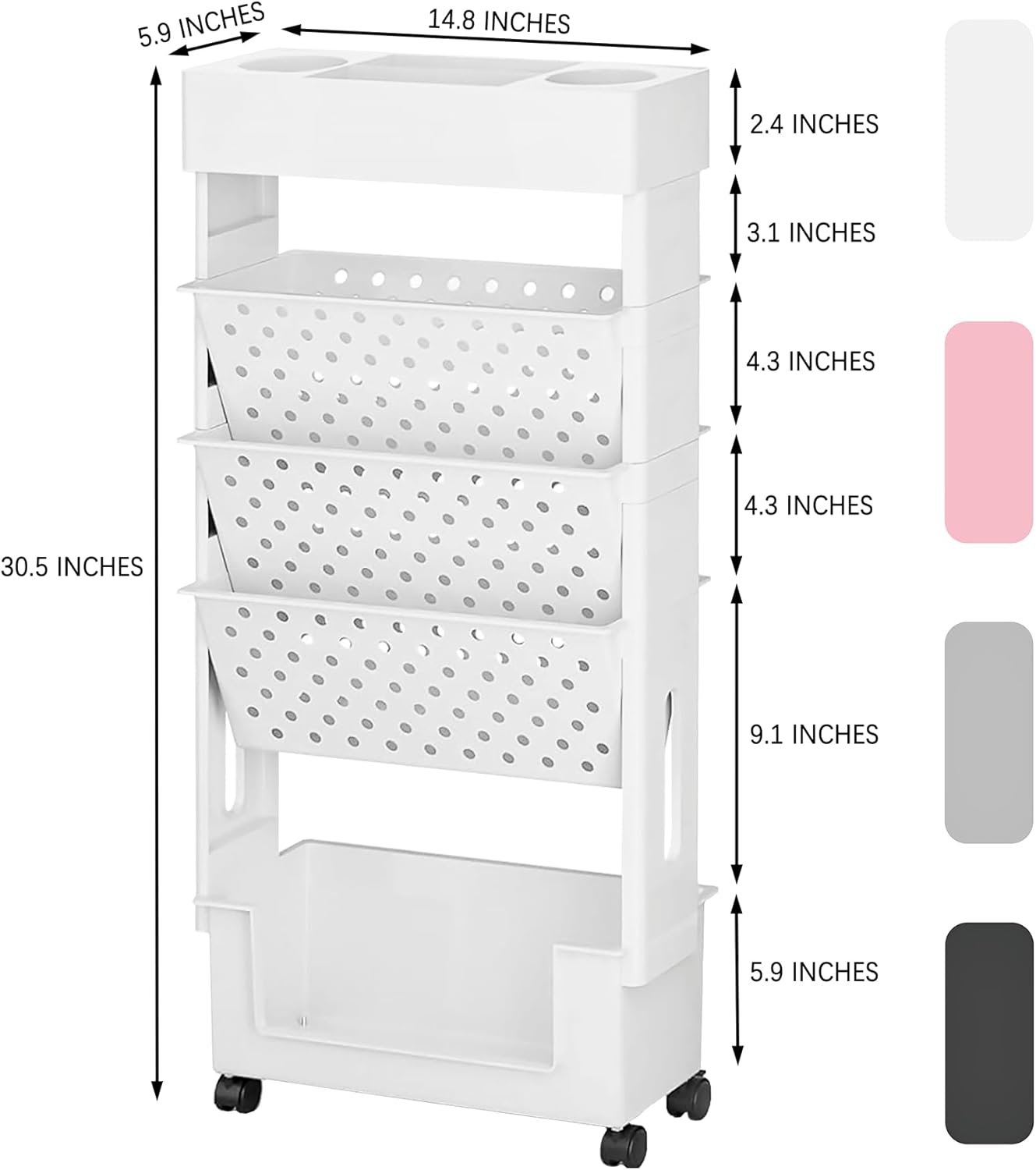 【The 5 Tier Cart Dimensions】The additional utility storage cart is a great storage and space saving solution for any room thanks to its versatile 30.5”(H) x 14.8”(W) x 5.7”(D) assembled dimensions