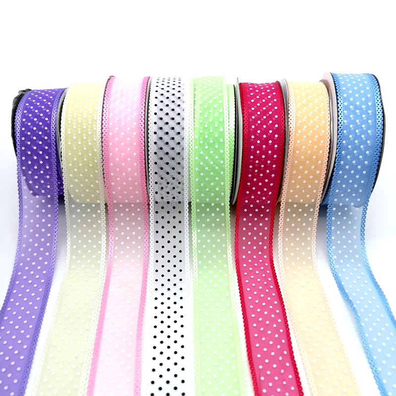 5 yards 1″ 25mm Ribbon Wedding Party Decoration Organza Ribbon Printing Dots Gift Wrapping Hair Bows DIY Christmas Ribbon #22