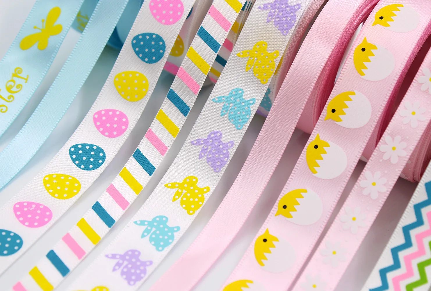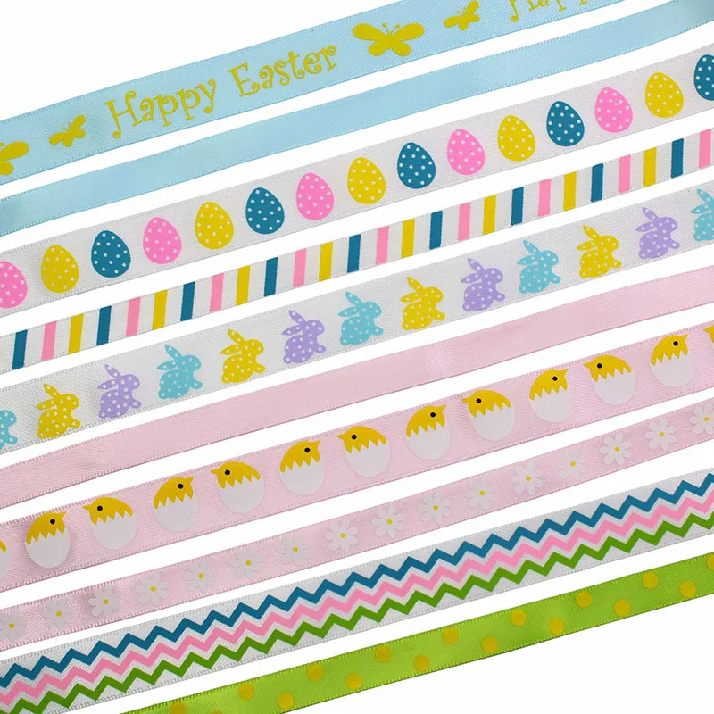 5 Yards 9-16mm Easter Egg Bunny Ribbons For DIY Sewing Fabric Gift Box Wrapping Hair Bows Crafts Party Decor Packaging Materials