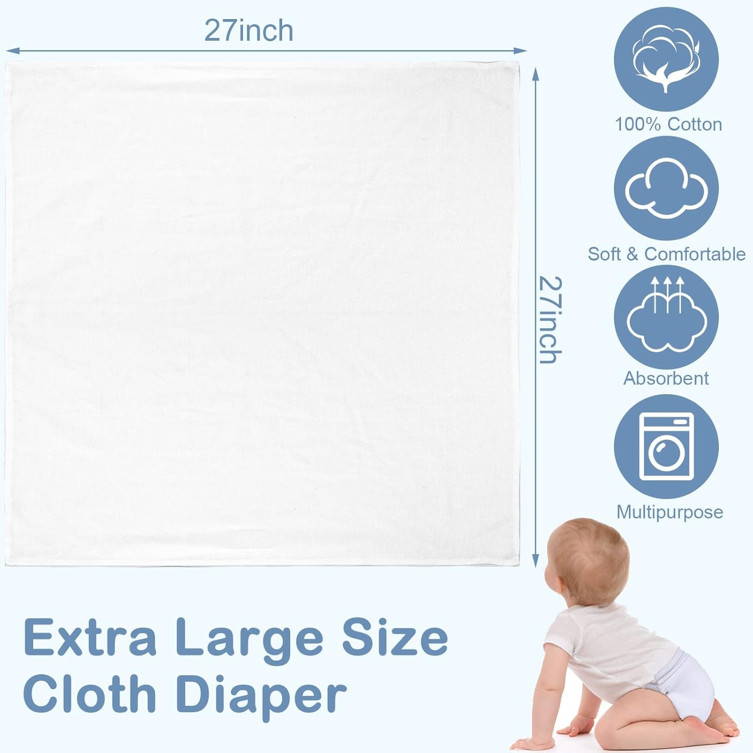 Versatile Usages: these diaper cloth are machine washable and dryable for easy cleaning, which can be applied as diapers, burp cloths, dust cloths, etc., practical and multiple functional