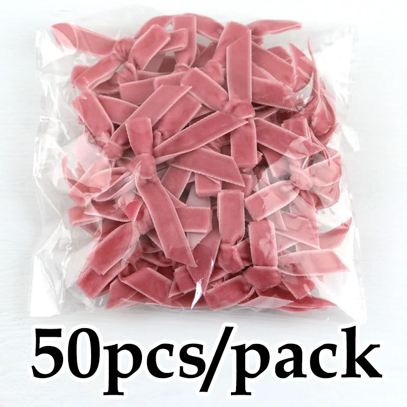 (50 Pcs/pack)5x5cm Velvet Bow Flesh Pink Ribbon Bows Small Size Polyester Satin Ribbon Bow Flower Craft Decoration DIY