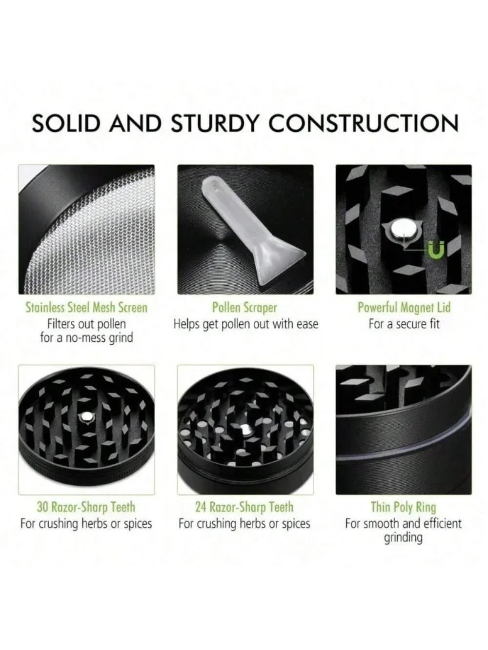 Our Herb grinder ensures incredible closure with the strong magnetic lid. Effectively prevent the lid from falling off easily while you are grinding.