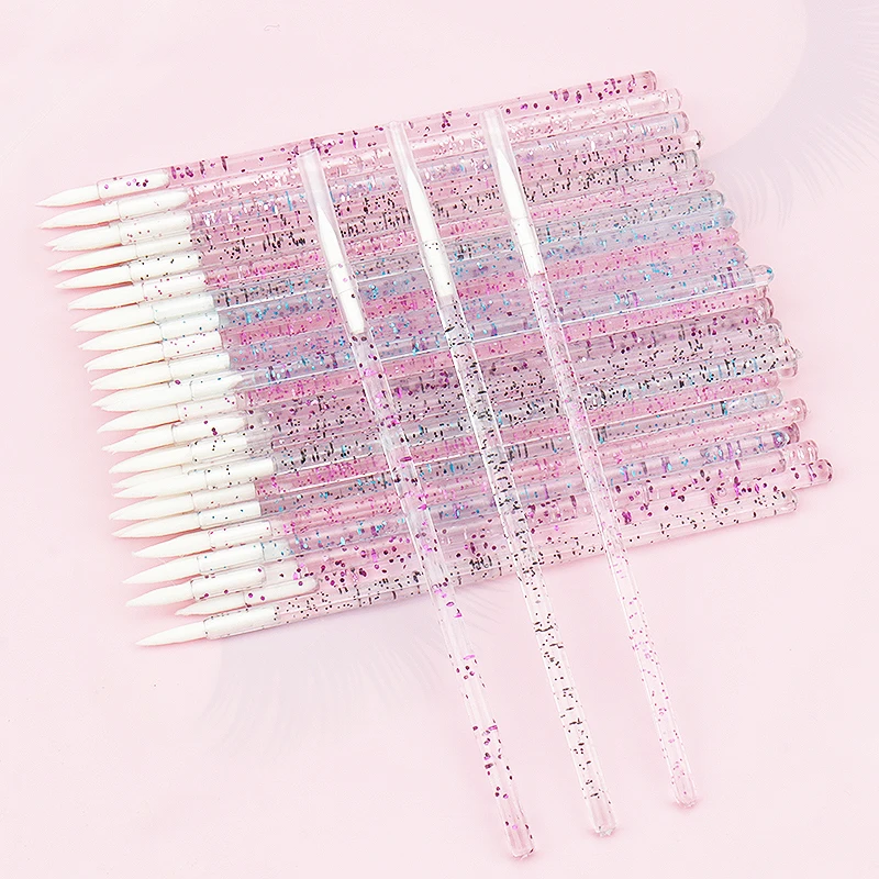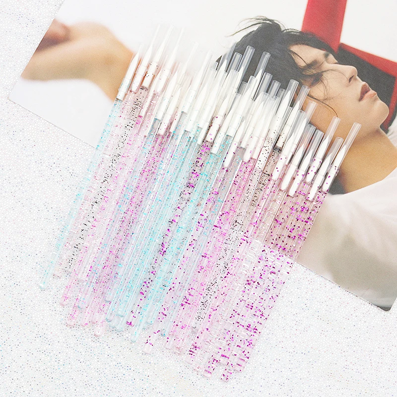 50pc Disposable Eyeliner Makeup Brush Crystal Handle Soft Fiber Lip Line Outline Brush Eyeshadow Blending Applicator Beauty Tool