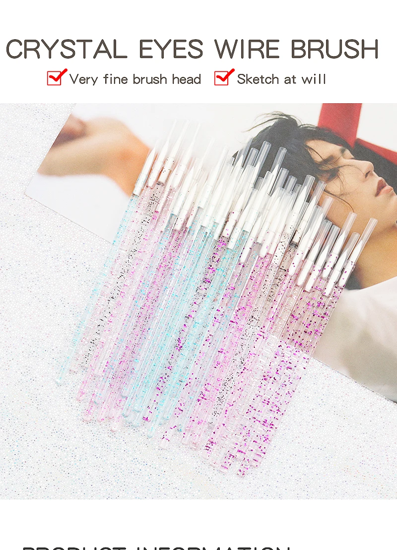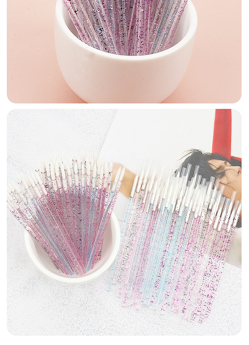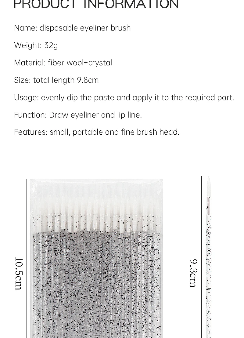 Item:50pc Disposable Eyeliner Makeup Brush Crystal Handle Soft Fiber Lip Line Outline Brush Eyeshadow Blending Applicator Beauty Tool