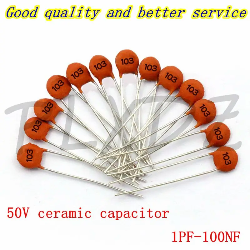 19 reviews for 50pcs Ceramic capacitor 50V 1pF ~ 100nF 0.1uF 104 102 10NF 103 15NF 153 472 222 332 2 3 4 5 6 7 8 9 10 33 47 82 100 PF 22 47 NF
