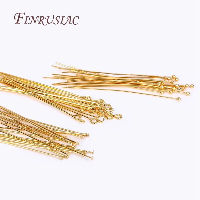 50pcs/lot 18K Gold Plated Eye Pin/Ball Head Pin/Flat Head Pin Supplies For Jewelry,Pins For Jewelry Making,DIY Accessories