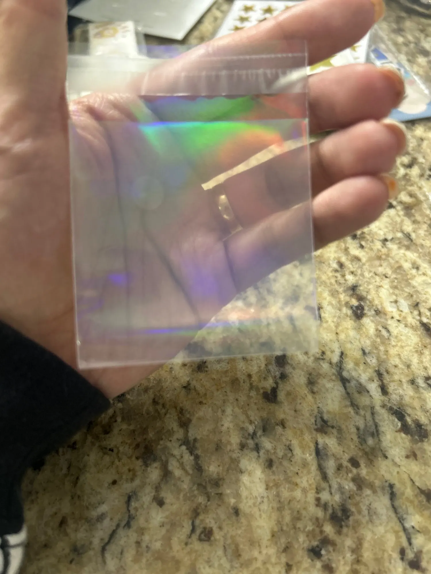 1 review for 50pcs Transparent Holographic Laser Self Adhesive Bag Aurora Color Pouches for DIY Jewelry Badge Gift Package Storage Bags