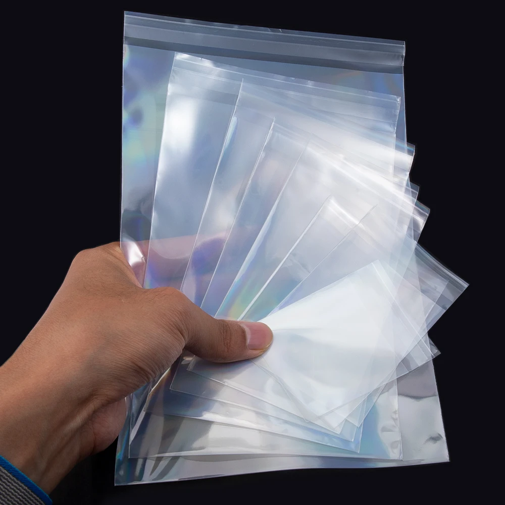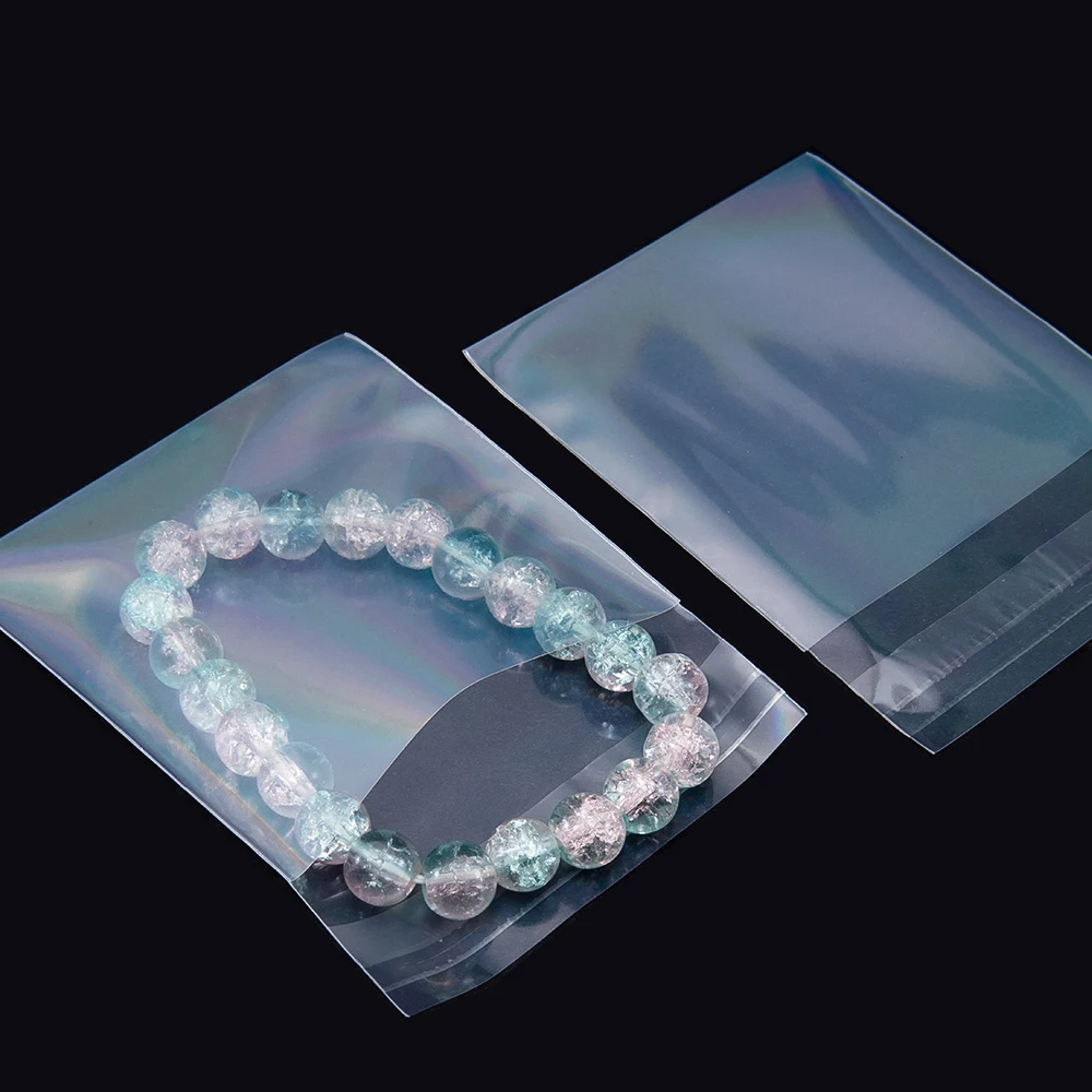 50pcs Transparent Holographic Laser Self Adhesive Bag Aurora Color Pouches for DIY Jewelry Badge Gift Package Storage Bags