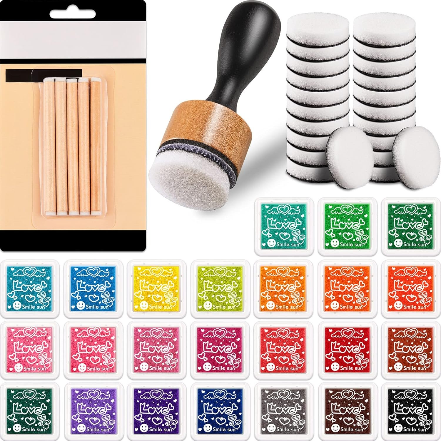 Nice Combinations: the package comes with 1 piece of paint application tool, 22 pieces of replacement foam pads, 5 pieces of sponge brushes pencil type coloring tools, and 24 pieces of ink pads, rich in quantity can well satisfy your various use demands or share with your friends